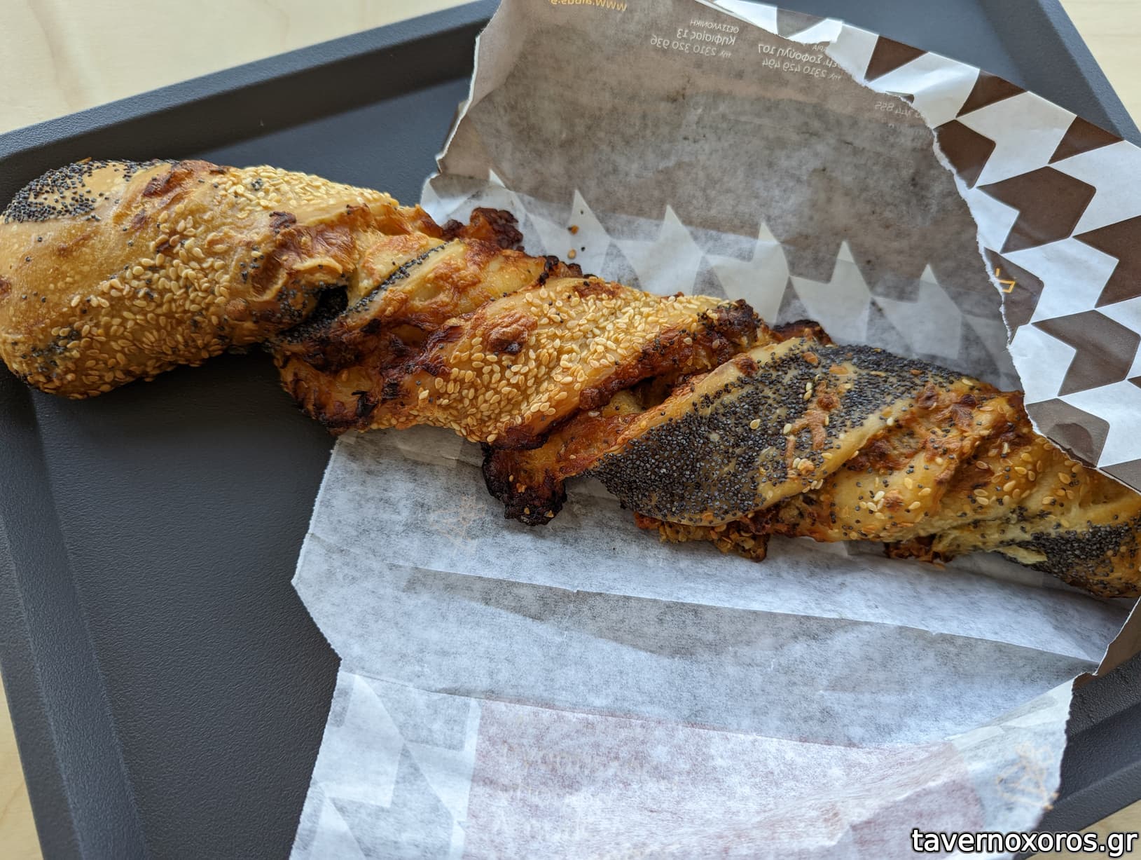 Πέρασμα για δοκιμή. Δοκίμασα ένα κουλούρι με κρεμμύδι (Γερμανικό Κριτσίνι το είπε), δε μου άρεσε (το κρεμμύδι ήταν ανύπαρκτο, σκέτο ψωμί), αλλά Πεϊνιρλί πολύ καλό, με τυρί νόστιμο, βούτυρο κτλ. 2,