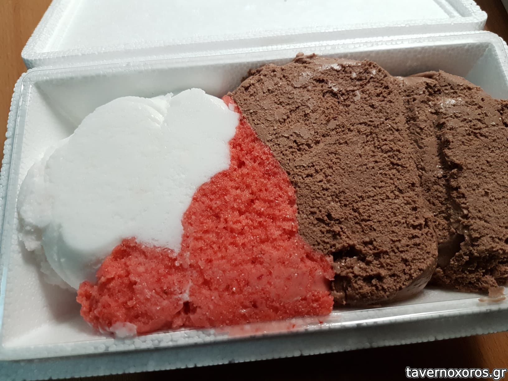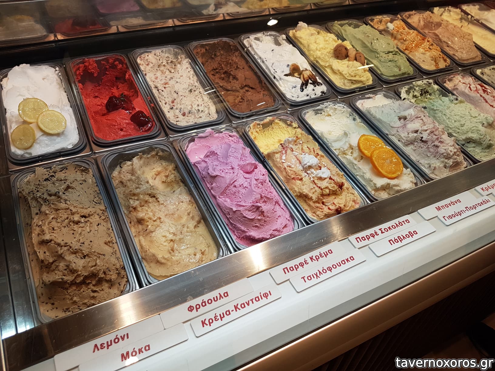Παγωτό: σοκολάτα, φράουλα, λεμόνι (καλό, ειδικά το λεμόνι)
