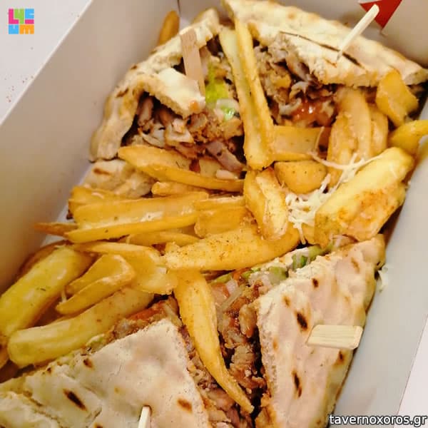 Πίτα με γύρο χοιρινό, ψιλοκομμένος ζουμερός με καλό ψήσιμο, καλή ποσότητα και αναλογία με πατάτες. Πίτα με σουβλάκι χοιρινό, καλό αλλά με λίγα κομμάτια κρέας και λίγο στεγνό, χάθηκε στις πατάτες. Νόστιμα ήταν, αλλά τα μπουριά είναι καλύτερα.