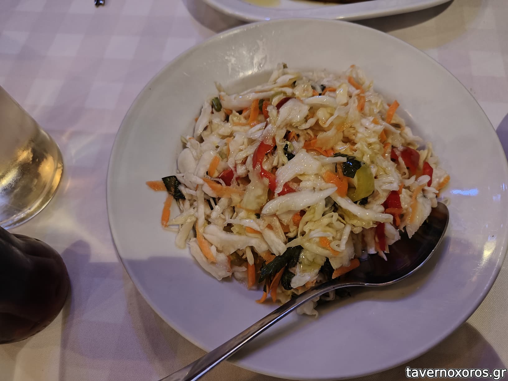 1 καβουροσαλατα (ετσι κι ετσι, υπερβολικος ανηθος. Στην αρχη θελαμε ταραμα, αλλα τελικα δεν ειχε).