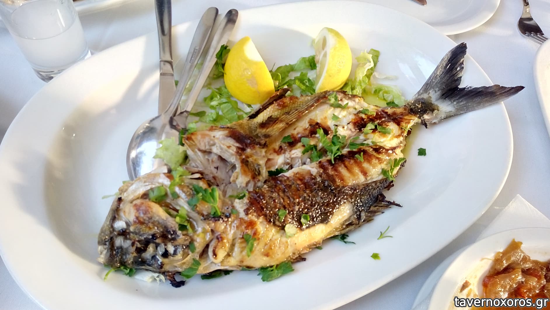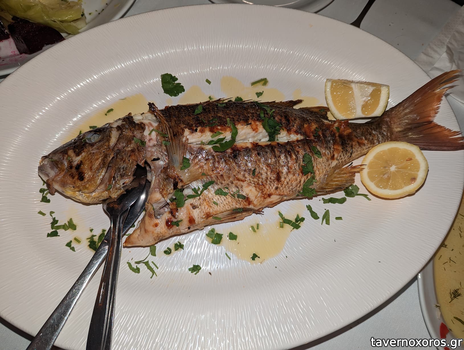 Σαργός 850γρ (εξαιρετικός, και πολύ σωστά ψημένος χωρίς να στεγνώσει)