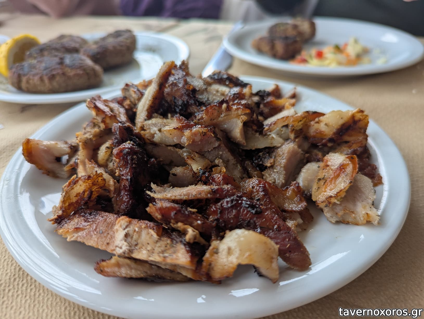 Όλα τα κρεατικά δυνατά: δοκιμάστηκαν σουβλάκια κοτόπουλο, παντσέτες, γύρος. Ο γύρος δικός του εντελώς, πολύ δυνατός, και πολύ λιπαρός συνάμα, αλλά ξεροψημένος, ωραίος.. Σαλάτα πικάντικη ωραία και αγγουροντομάτα..