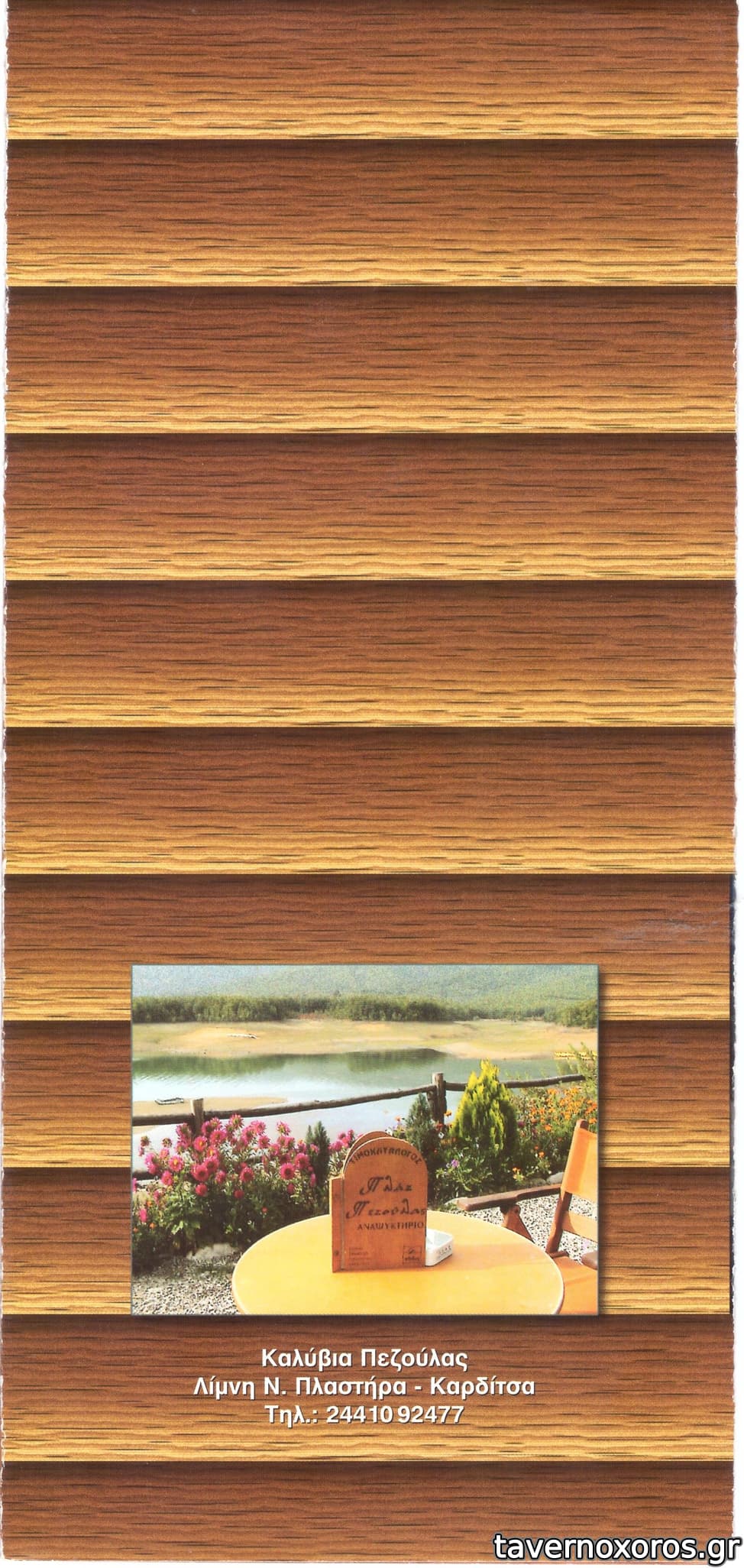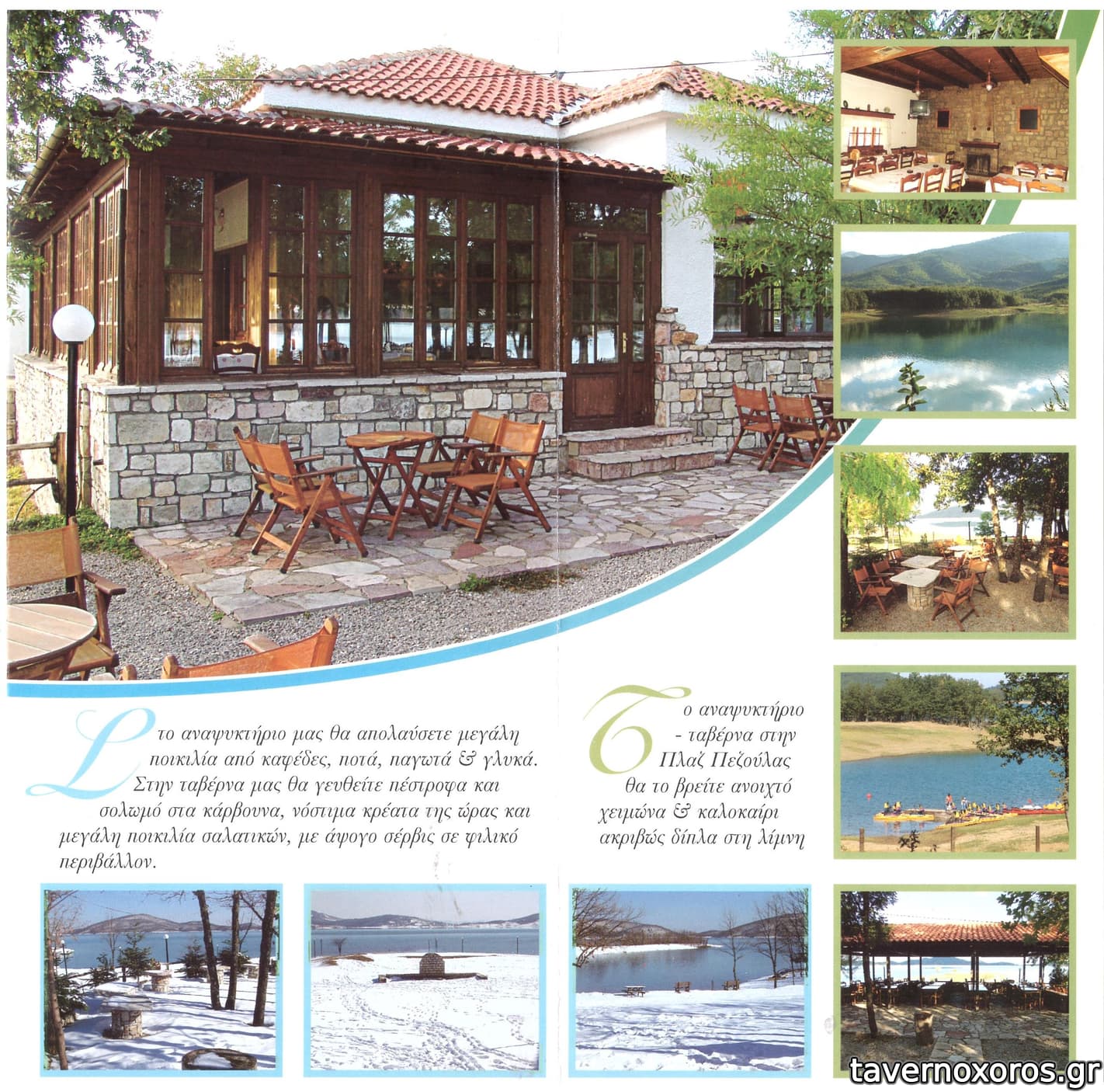 Σε γραφική τοποθεσία, δίπλα στο νερό. Έχει κανονικό μενού και σερβίρει τα πάντα, ψητά της ώρας, πέστροφα, τσιπουρομεζέδες, καφέδες κλπ. Τιμές φυσιολογικές.