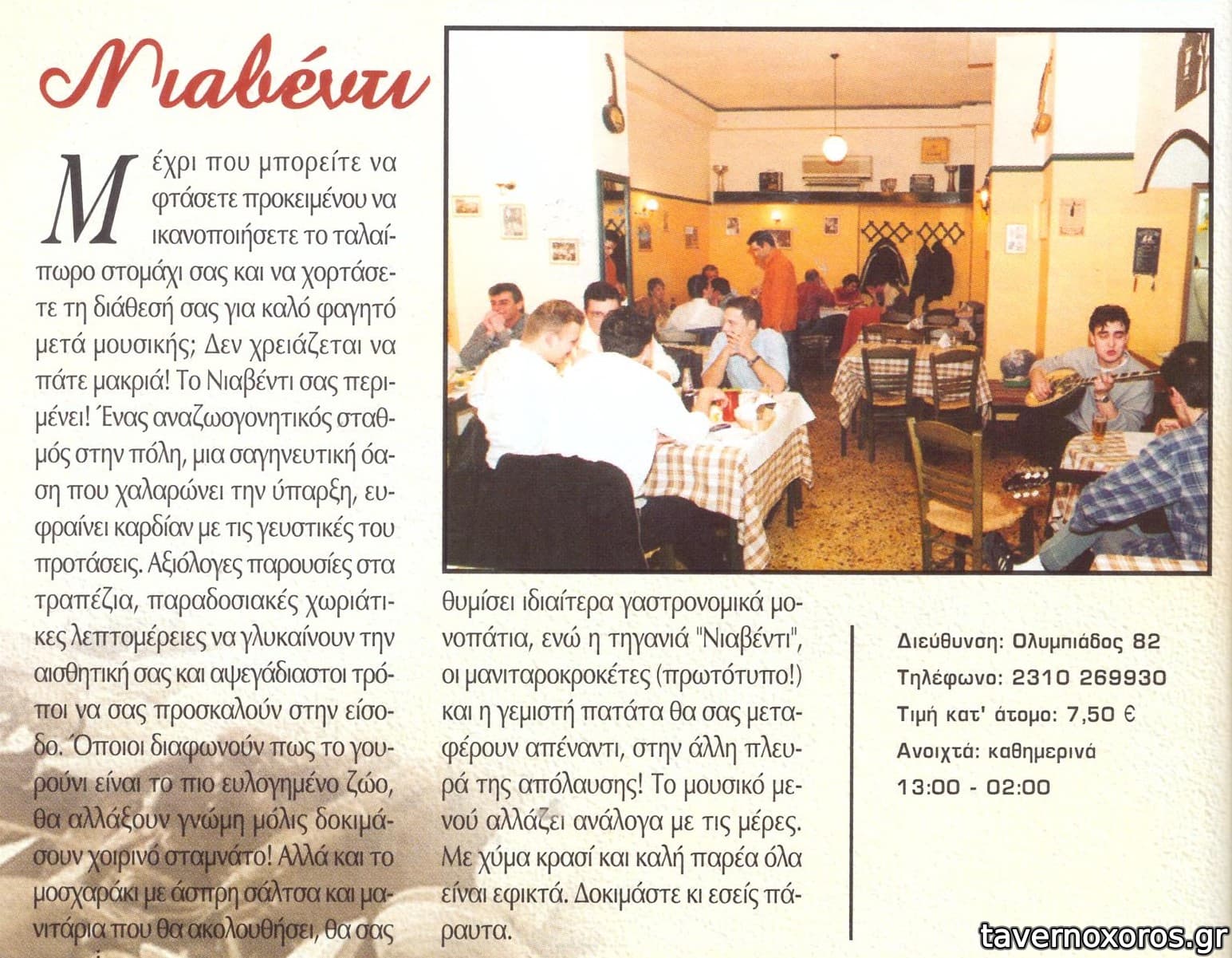 Kαποτε ειχαμε στοιχειωσει στο νιαβεντι..καποτε ο -παλαι ποτε- Κημης (τη μερα δασαρχης, τη νυχτα μαγειρας κ ψητας στο νιαβεντι,τον θυμαται αραγε κανεις?)ο Κημης λοιπον μουρμουριζοντας σε αεναη επαναληψη "ολο ουζο-ουζο-ουζο το βαρεθηκα.." , εψηνε πεστροφες στις πεντε το πρωι κι εφερνε αλλο ενα μισοκιλο στο τραπεζι για να κλεισουμε "τη βραδια"...