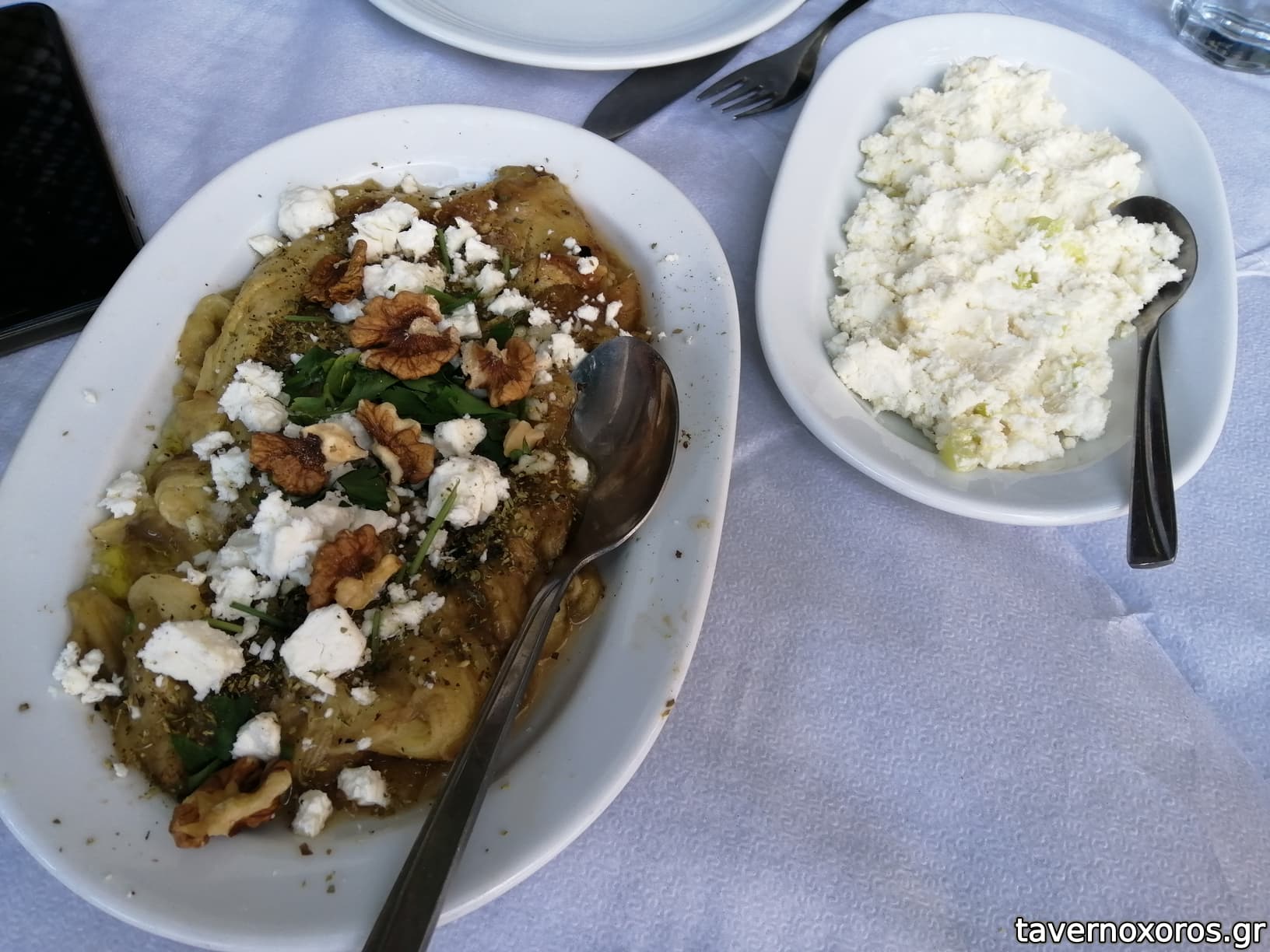 Μελιτζάνα με φέτα (σπέσιαλ) και λευκός ταραμάς (ωραίος)