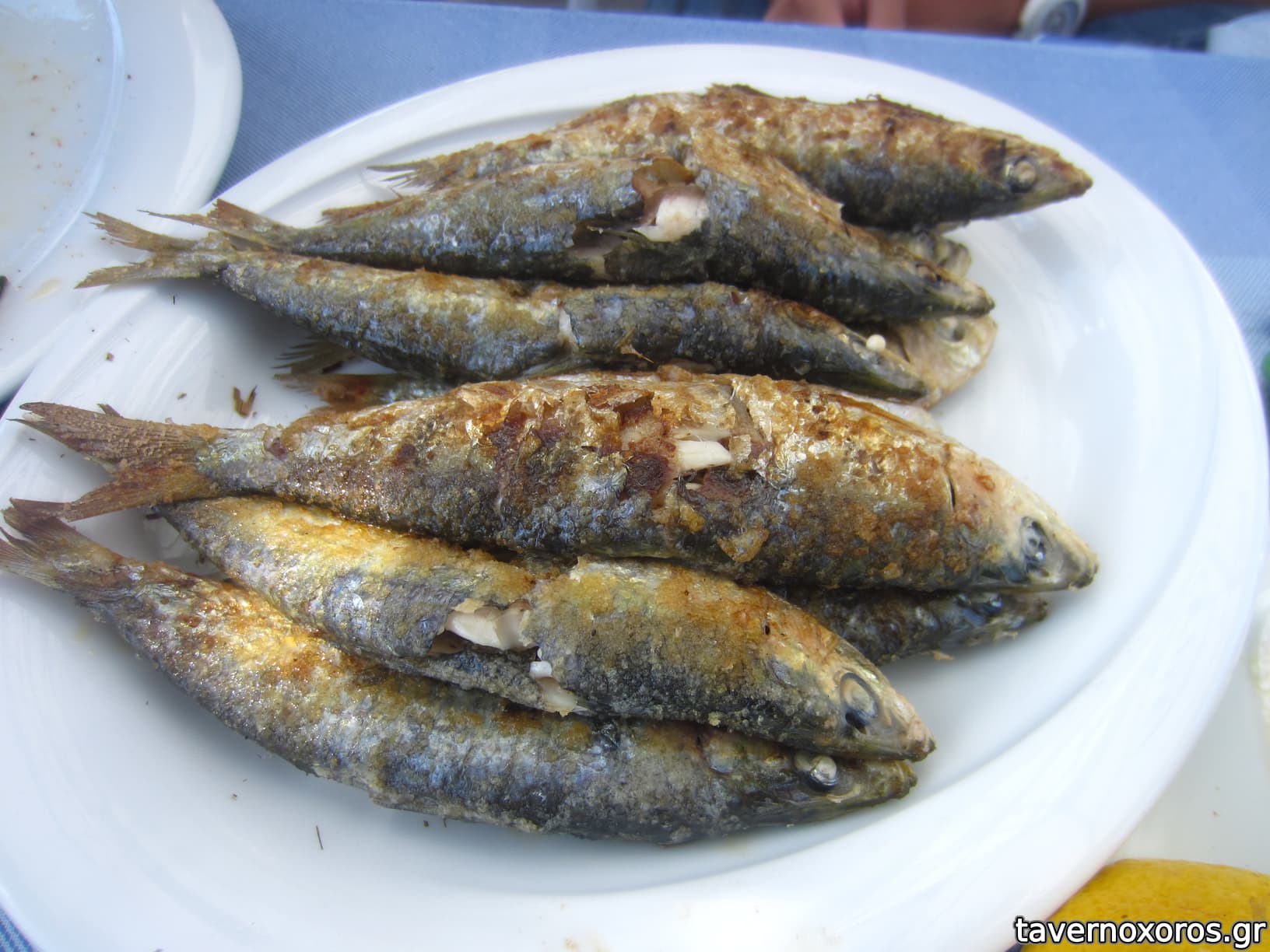 Σαρδέλα σχάρας (καλή, πρέπει να είχε περαστεί και από τηγάνι, δυστυχώς ήταν ακαθάριστη με όλα τα λέπια της)