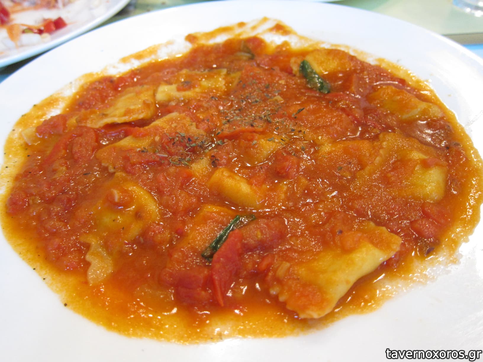"Ραβιόλια γεμιστά με τρούφα, ανθότυρο και κόκκινη σάλτσα αντζούγιας" (handmade, καλά, αλλά αντζούγιες που έλεγε η περιγραφή κτλ δεν γεύτηκα)