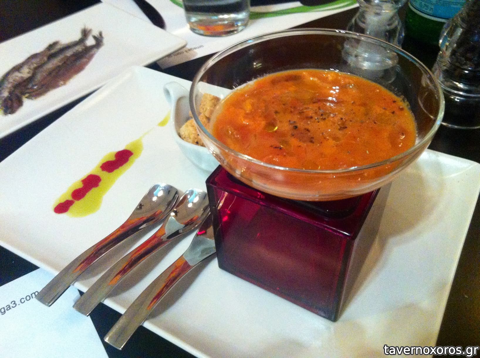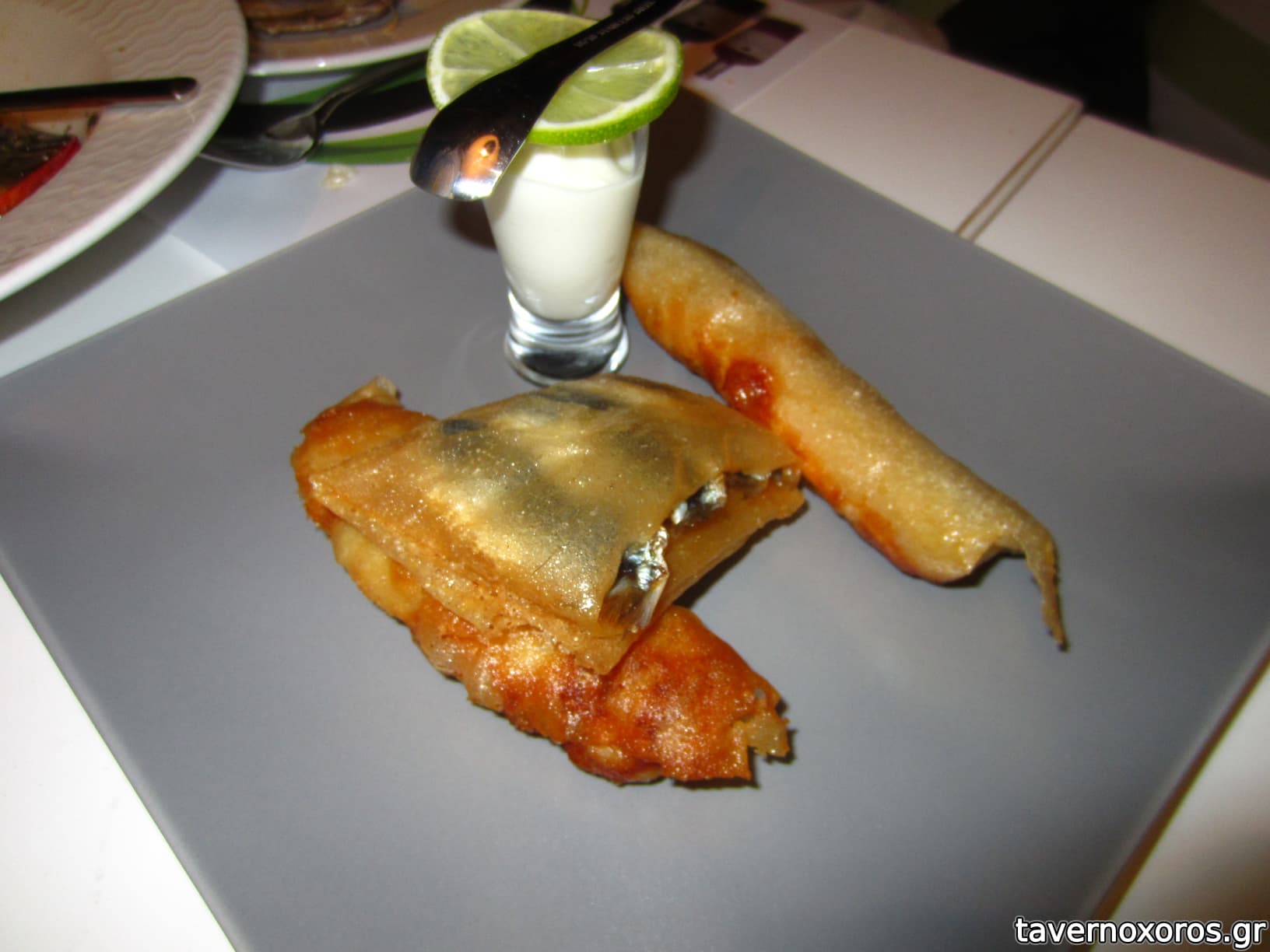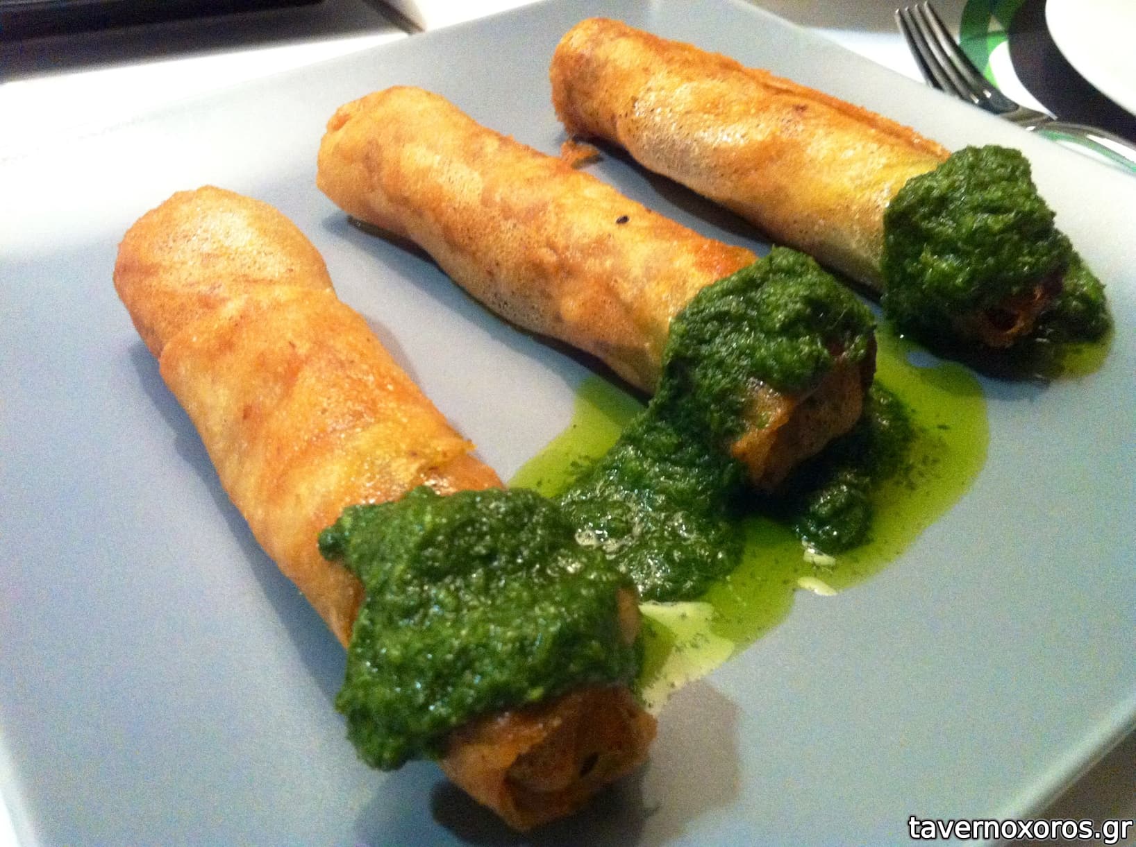 "Μπακαλιάρος, σολομός και σαρδέλα τυλιγμένα σε ρυζόφυλλο με κρύα σάλτσα κίτρου" (απαράδεκτο, τα τηγανητά ήταν χειρότερα και από βρετανικό fish & chips)