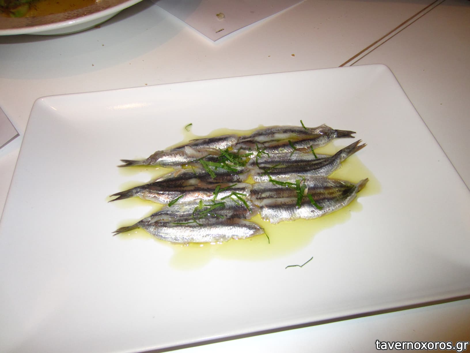 "Γαύρος φιλέτο μαριναρισμένος με πιπερόριζα και λουίζα" (τίποτα ιδιαίτερο)