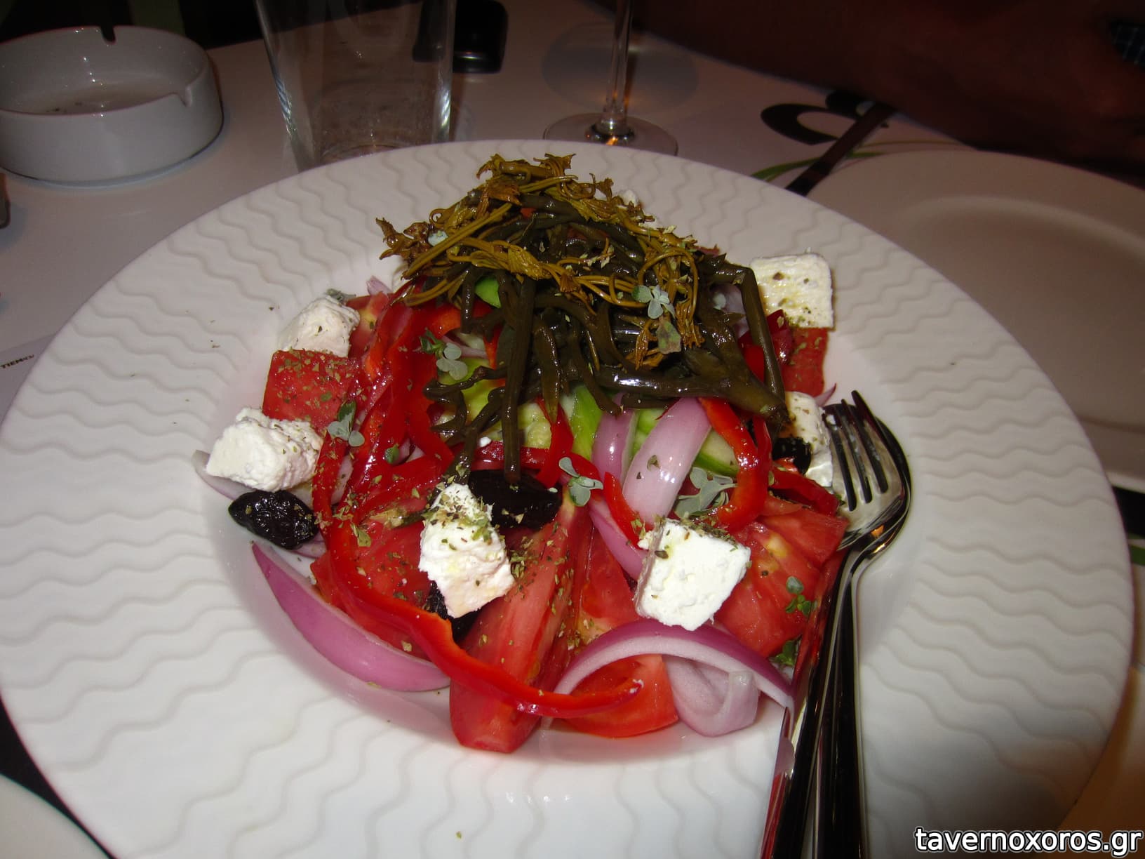 "Ντοματοσαλάτα με καππαρόφυλλα, κρίταμα, τσιτσίραβλα, ντακοελιές και αθωνίτικη φέτα" (μια απλή χωριάτικη)