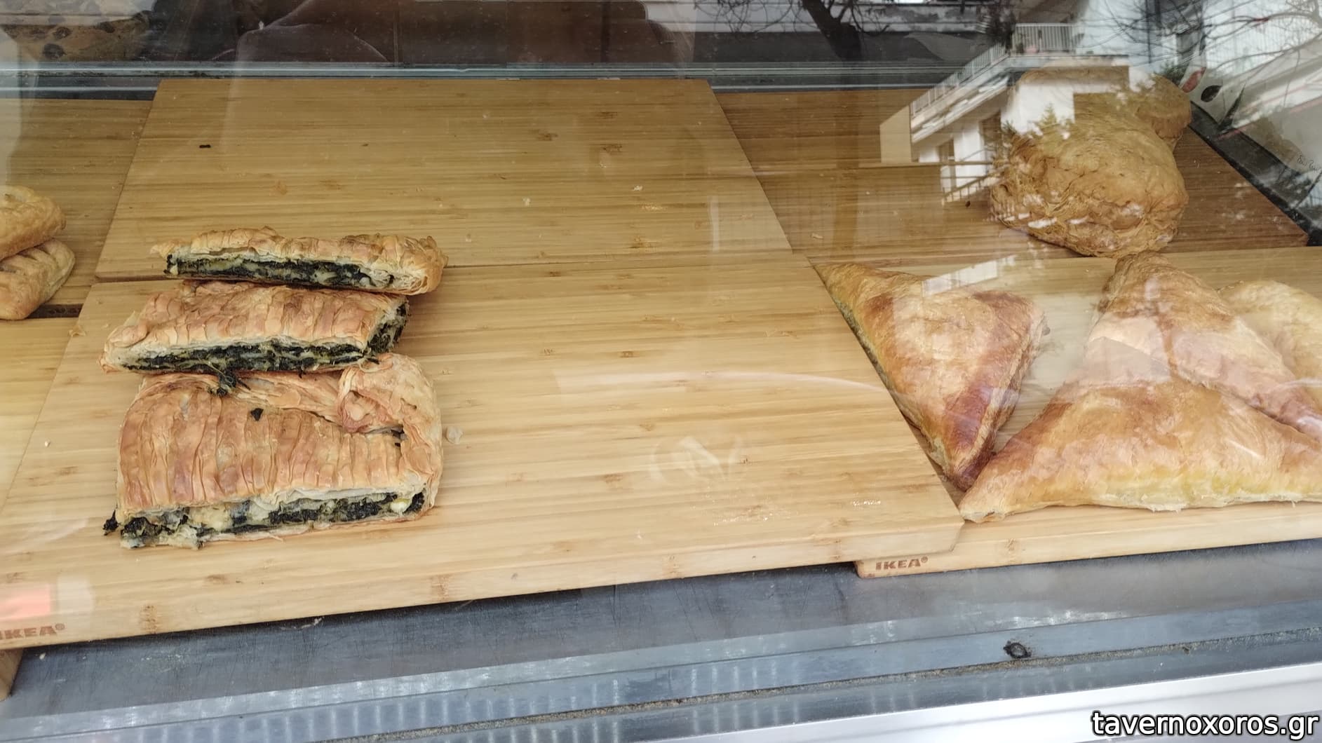 Προθήκη με τυροπιτοειδή. Αυτή την πίτα με το ριγέ φύλλο, με τη σούρα, την έχω πετύχει παντού!!