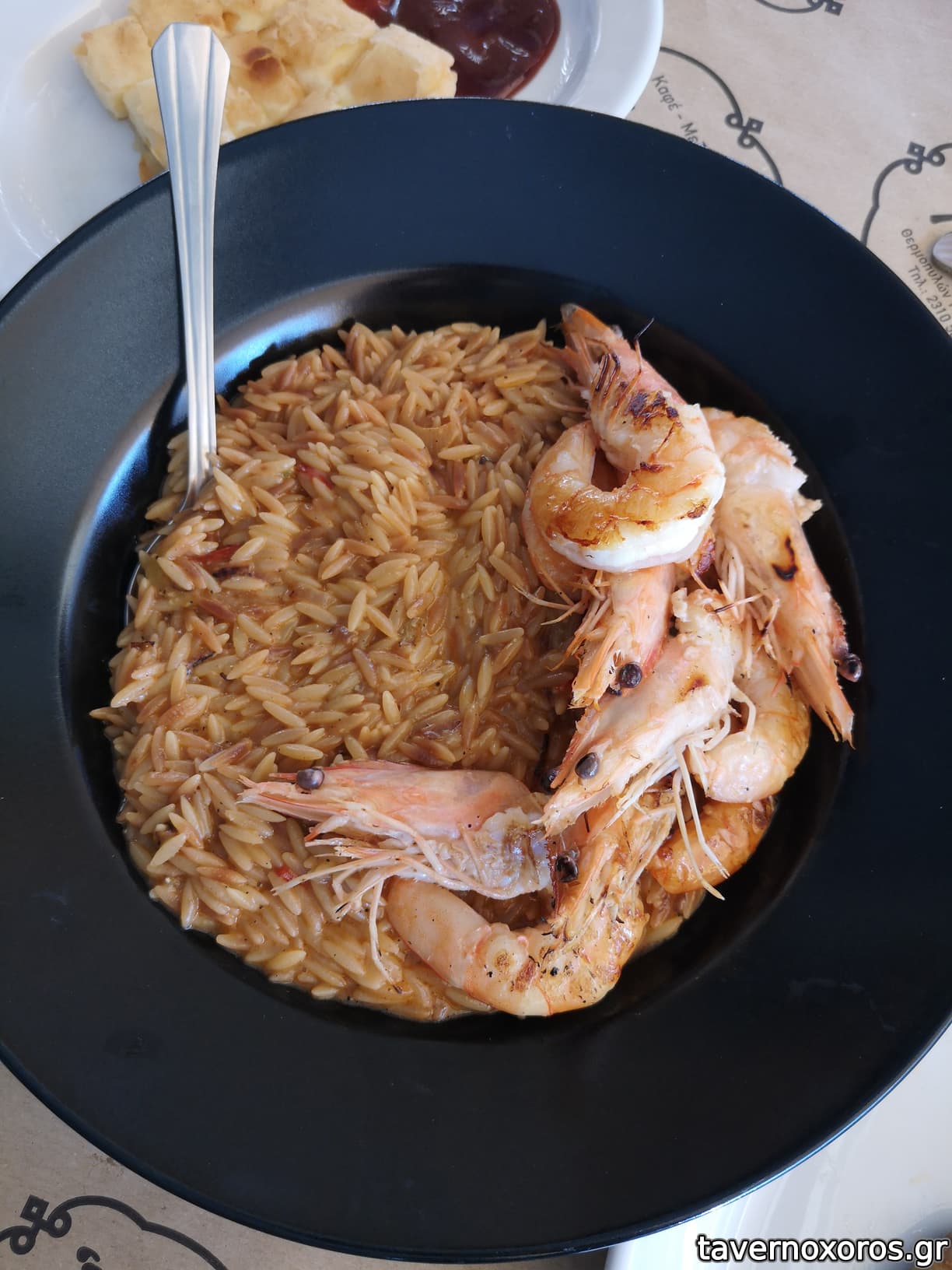 Κριθαρότο με γαρίδες (καλό, μεγάλη μερίδα)