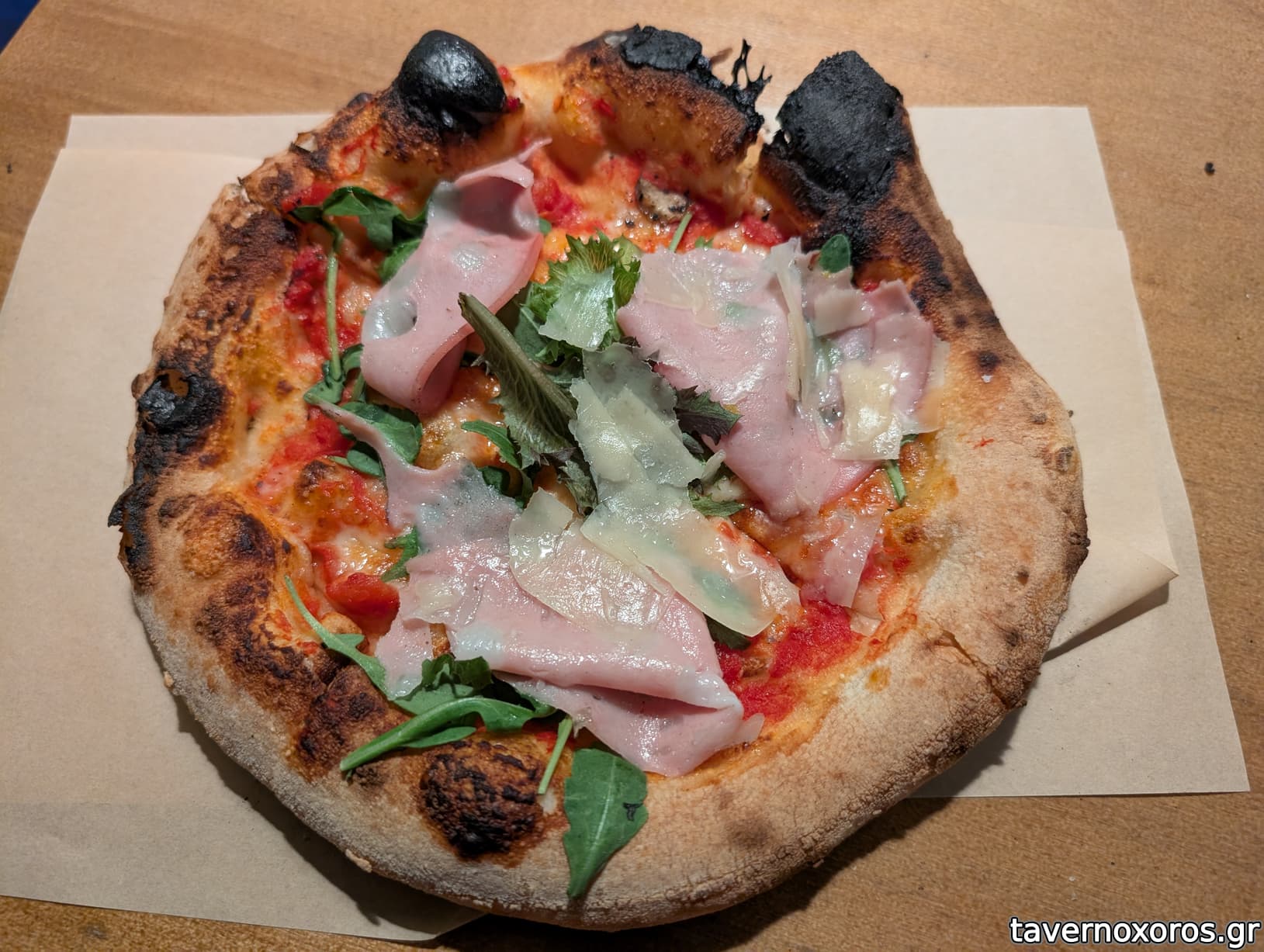 Δεν ειχα πολλες επιλογες και πηρα αυτη που ειχε ξεμεινει. Με ροκα, παρμεζανα, προσουτο και δεν θυμαμαι τι αλλο.