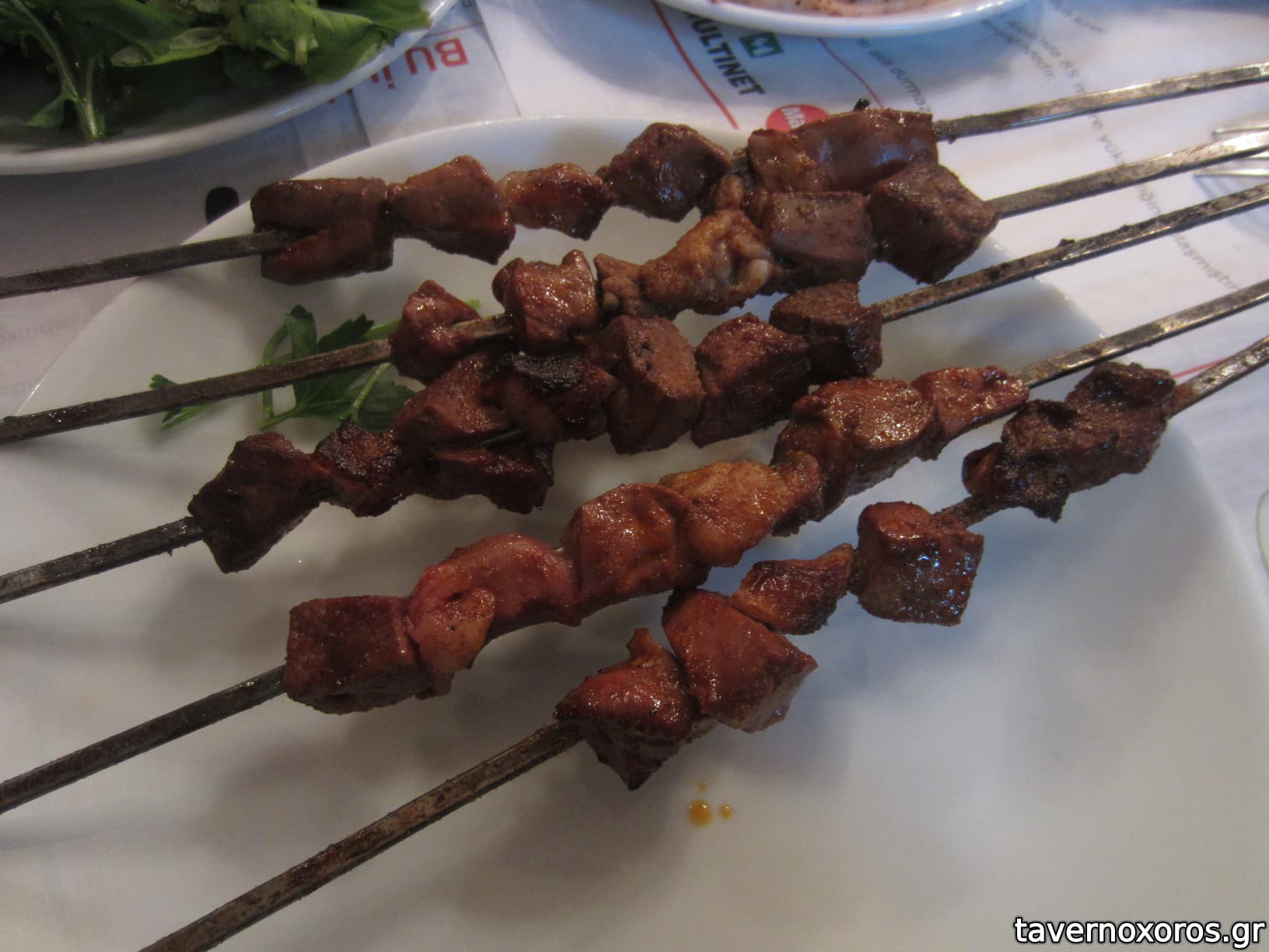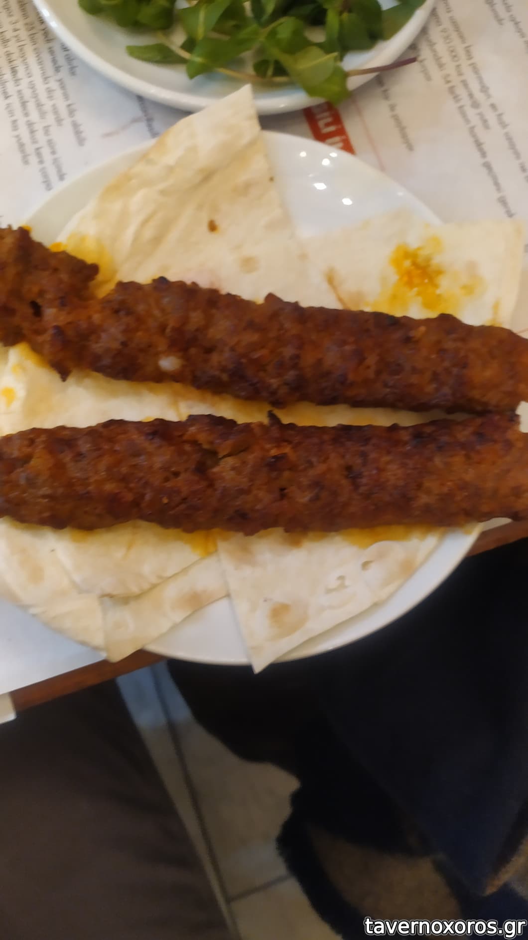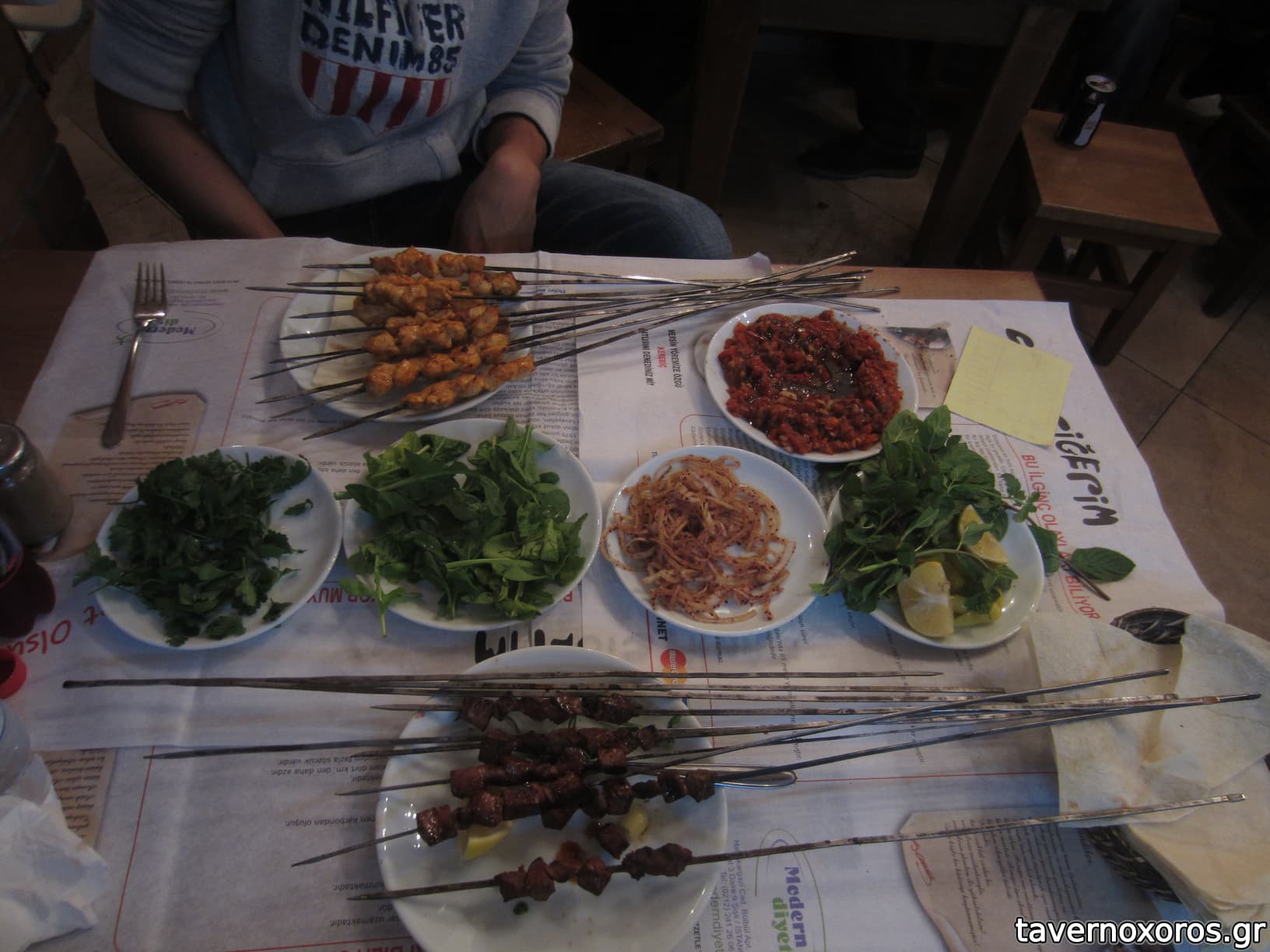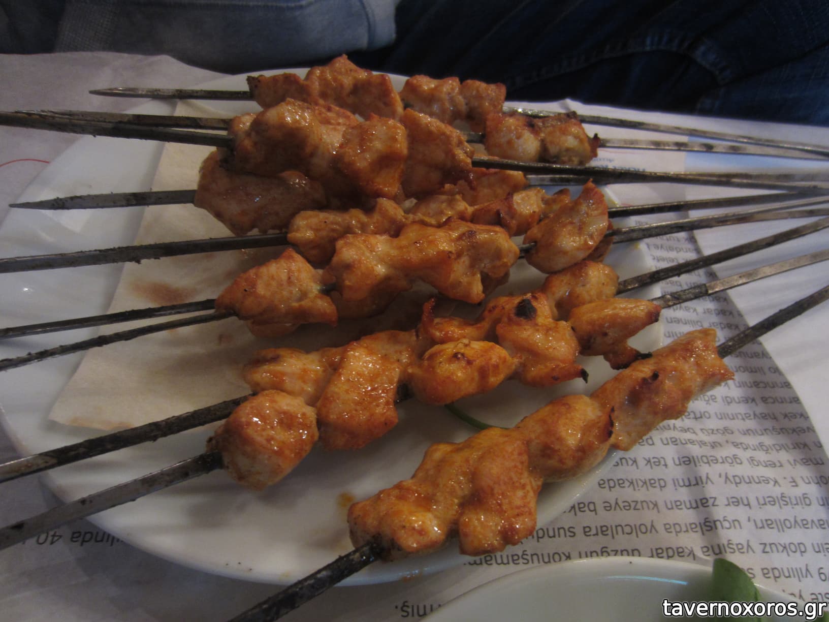 1 μερίδα σουβλάκια κοτόπουλο, μισή μερίδα αρνίσια (?)