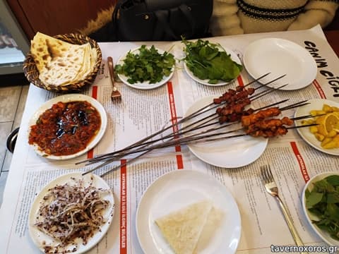 Οι μερίδες σουβλάκια μαζί με τα συνοδευτικά πιάτα