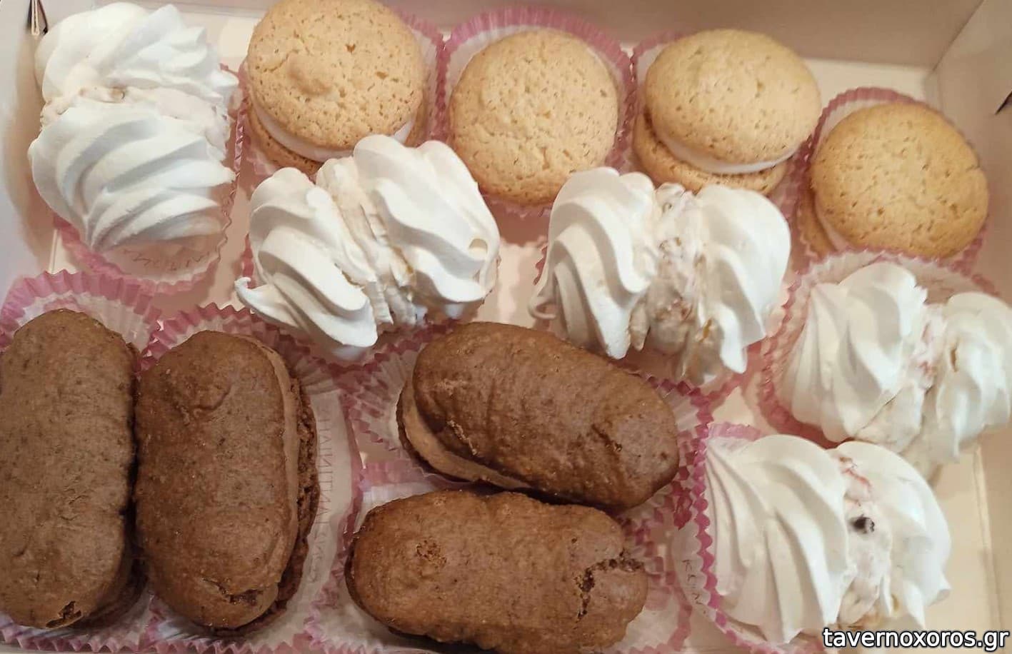 Μπεζέδες, μακαρόν, καρυδάτα (όλα στα 27,80 € το κιλό)