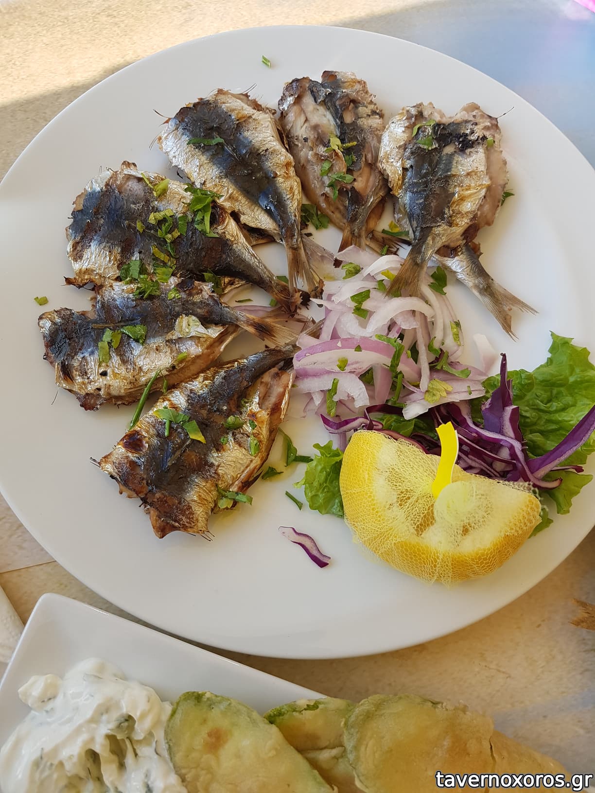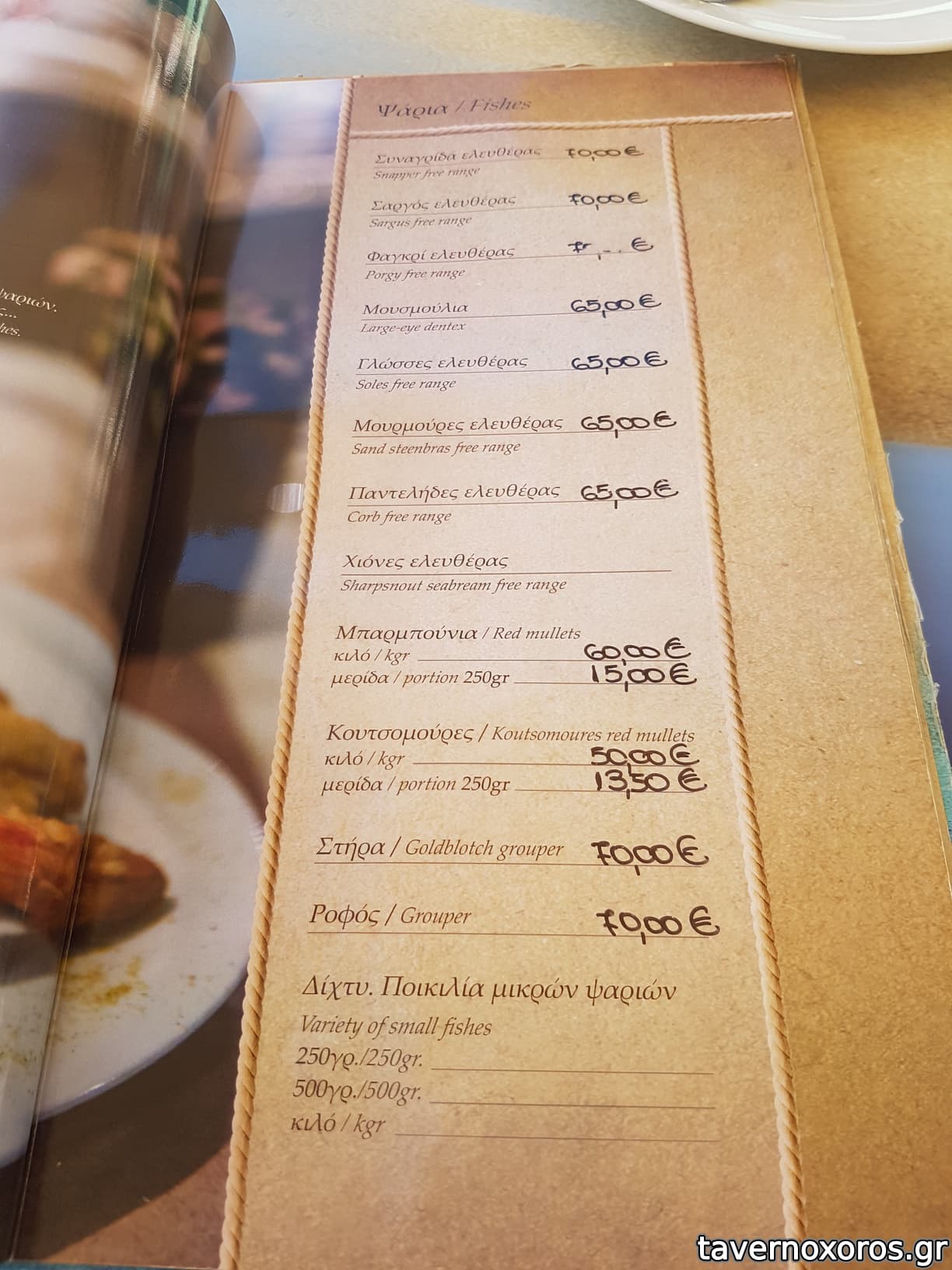 Πήραμε φαγκρί ~700γρ. πελαγίσιο (δεν έχουν ψάρια ιχθυοτροφείου), σωστά ψημένο και πεντανόστιμο, και το καθάρισαν μπροστά μας.
