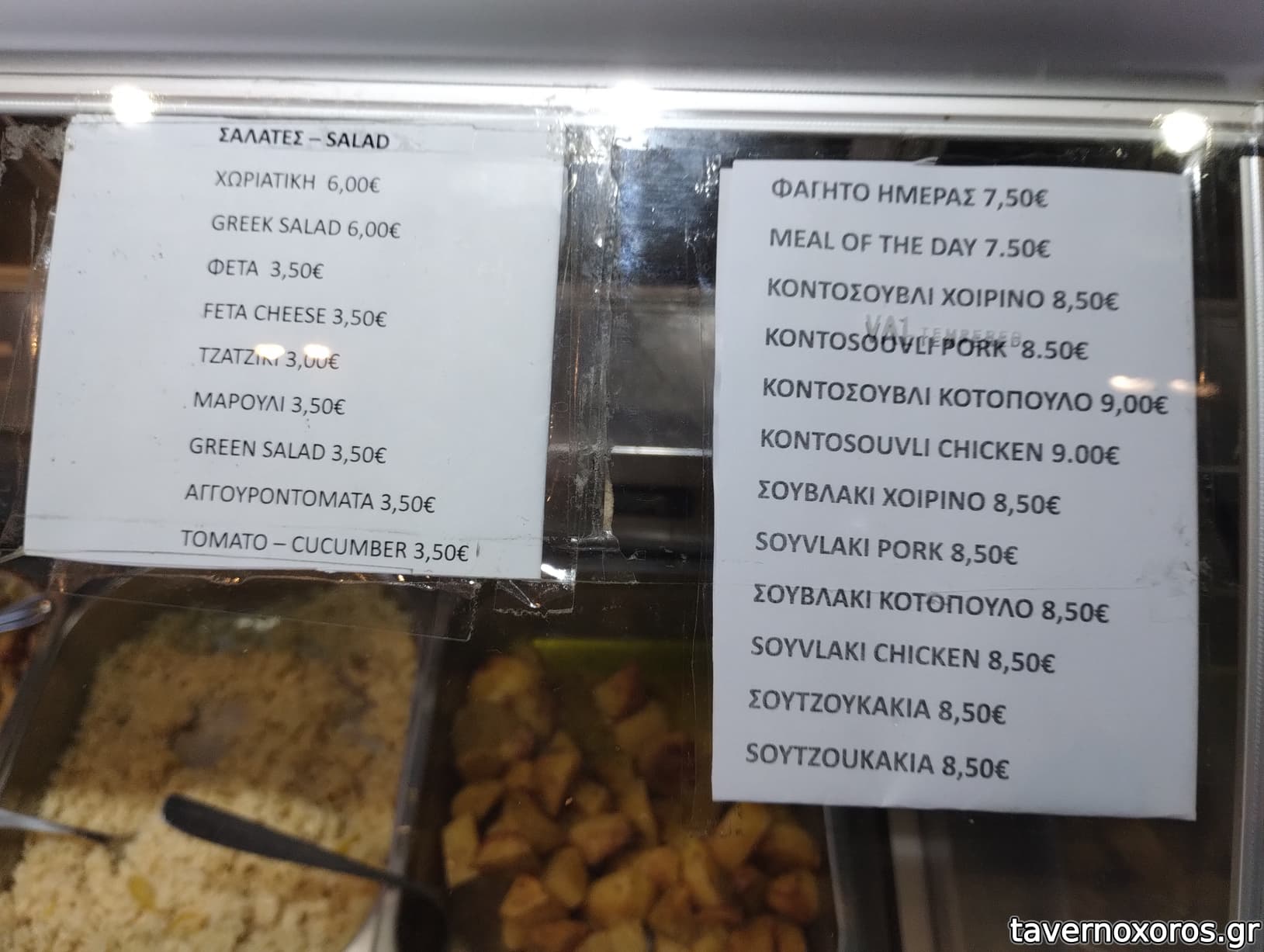Έχει διάφορα σάντουιτς, τυροπιτοειδη, λίγα μαγειρευτά (πχ. παστίτσιο, μουσακά κτλ.), και ψητά (πχ. σούβλακια, σουτζουκάκια κτλ.)