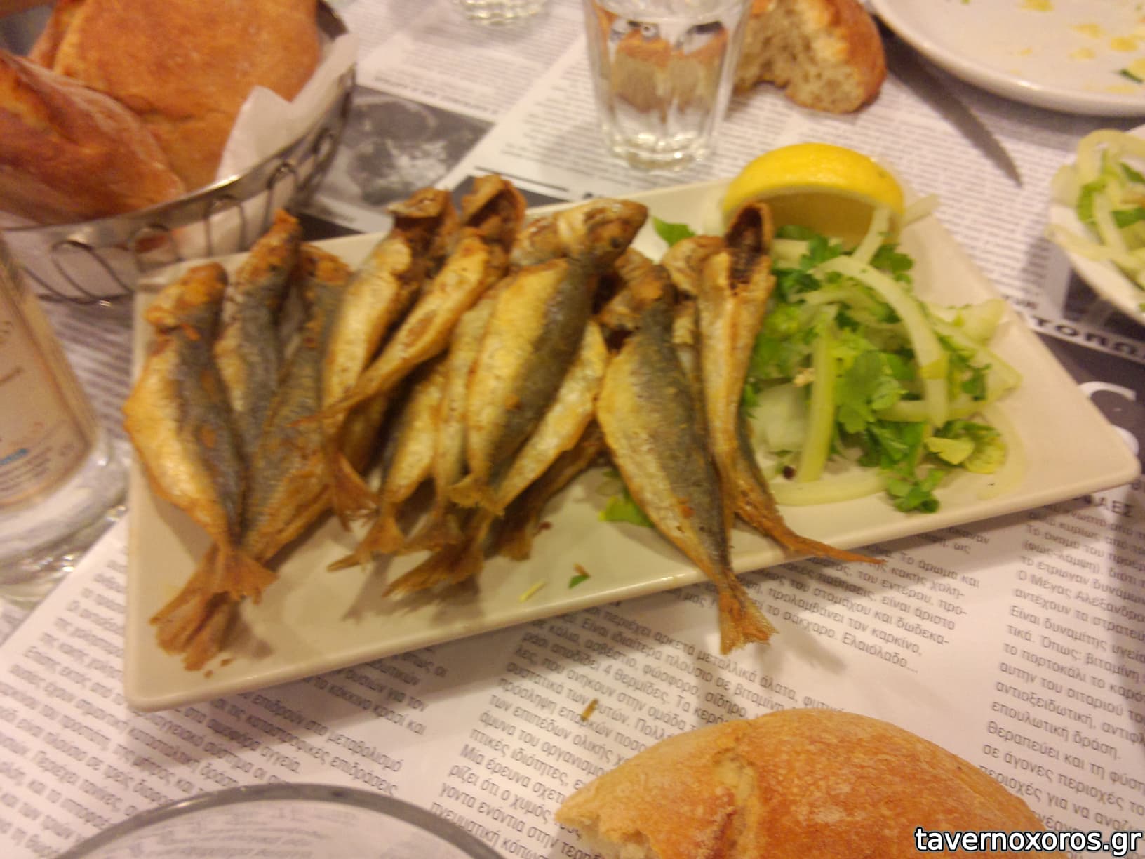 Φτάσαμε στις 21:30 και παραγγείλαμε διάφορα πιάτα (μύδια αχνιστά, χταπόδι, σκουμπρί καπνιστό, σαλάτα, σουπιές κρασάτες κ.ά.). Τα πιάτα άρχισαν να έρχονται σιγά-σιγά και ένα-ενα! και περίπου μία ώρα μετά μας ενημέρωσαν ότι οι σουπιές… τελείωσαν. Ωραία οργάνωση. Ζητήσαμε τότε γαρίδες στη σχάρα και υπενθυμίσαμε ότι περιμένουμε και τηγανητά καλαμαράκια που δεν είχαν έρθει.