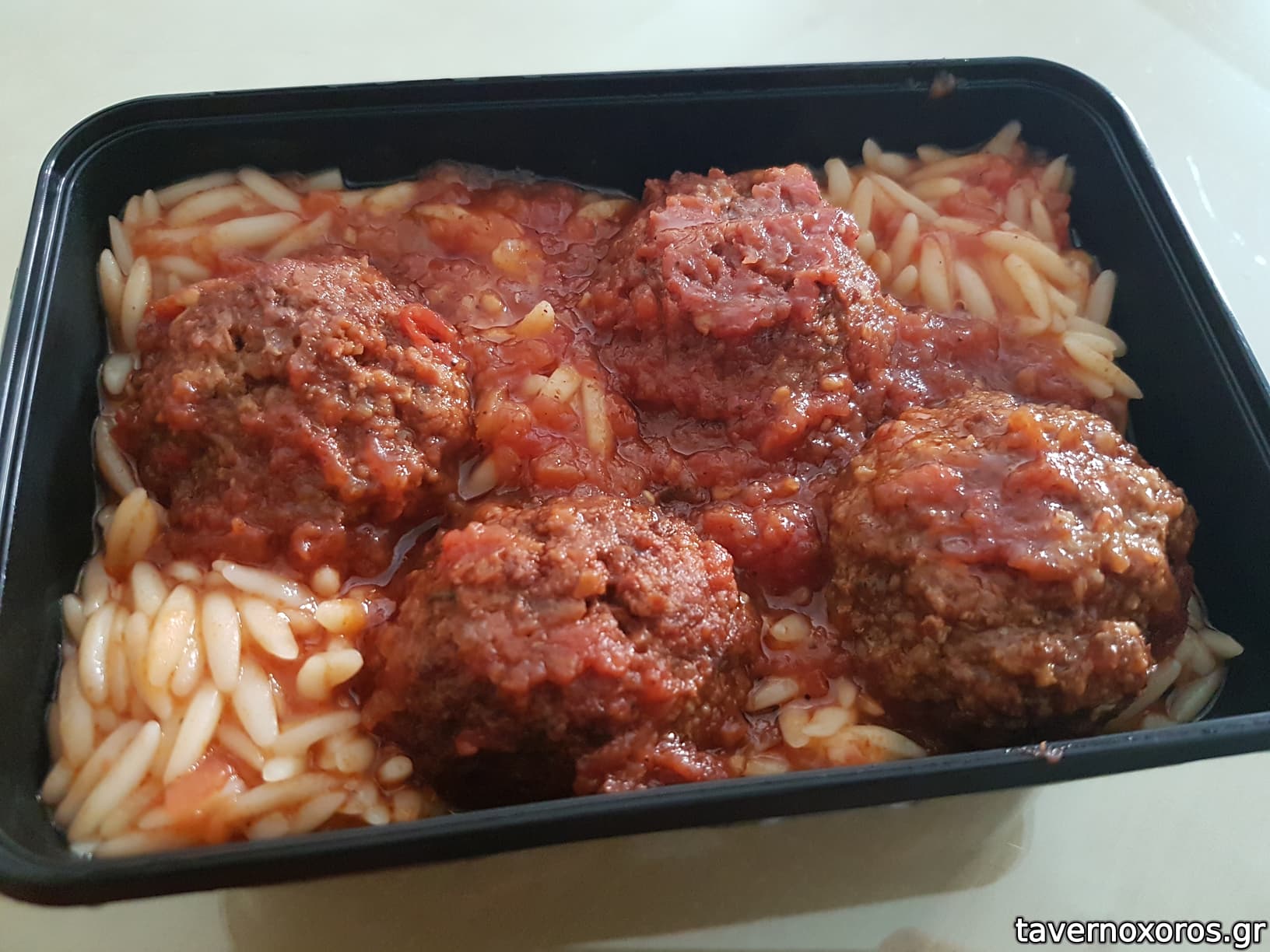 Κεφτεδάκια με κριθαράκι (πολύ καλά τα κεφτεδάκια, το κριθαράκι απλώς οκ)