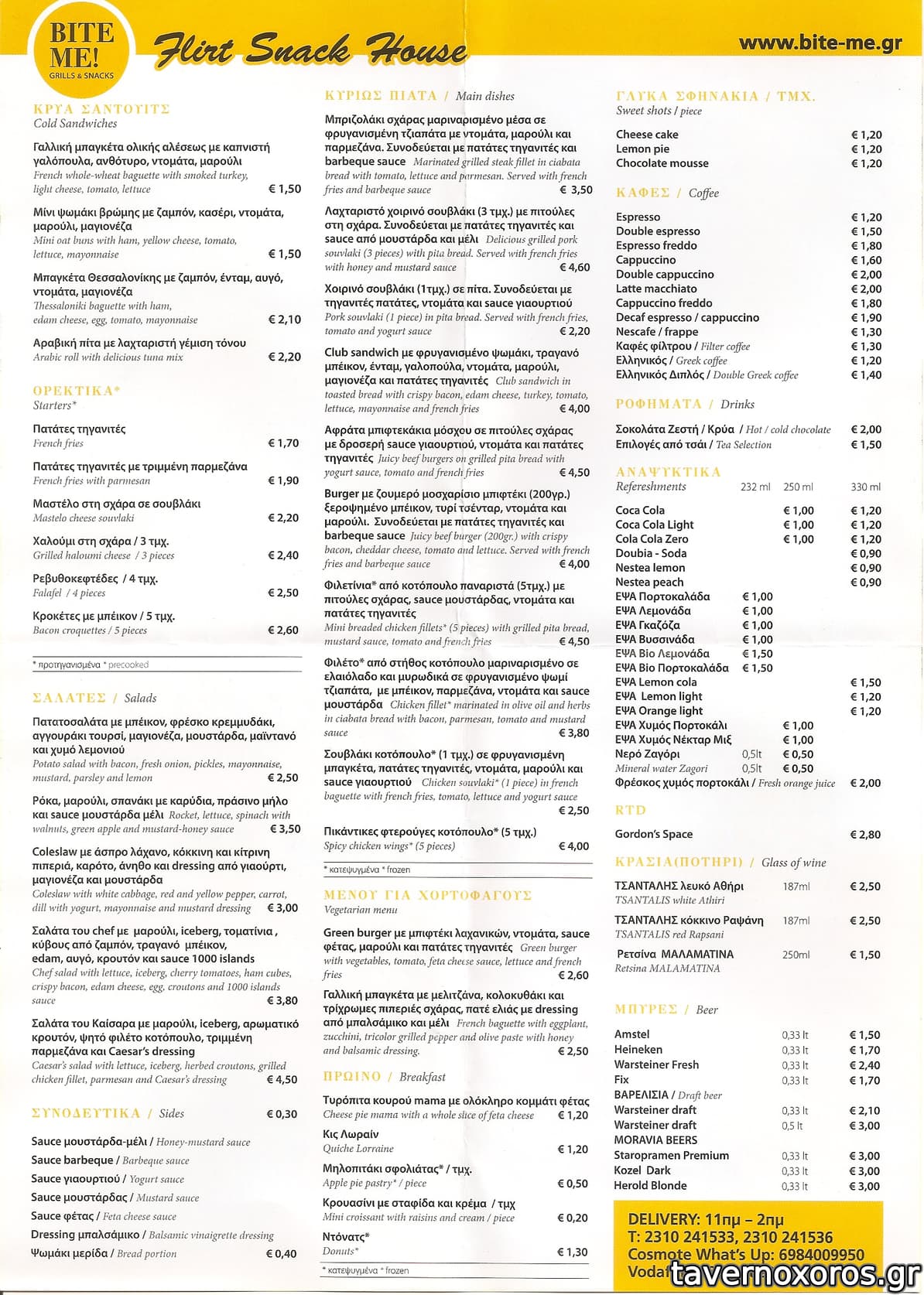 Παραγγείλαμε σπίτι πριν δύο ημέρες. Συγκεκριμένα, 1 μερίδα μπέργκερ, 1 μερίδα σουβλάκια χοιρινά (3 τμχ) και ένα μπριζολάκι σε τζιαπάτα. Καλή σχέση ποιότητας/τιμής. Το σάντουιτς με μπριζολάκι ήταν πολύ καλό, νόστιμο ψωμάκι αλλά με χάλασε η γεύση της σως μπάρμπεκιου. Τα σουβλάκια πολύ καλά, και οφείλω να ομολογήσω πως δεν το περίμενα. Ήταν μάλλον χειροποίητα (όχι δηλαδή αυτά τα ομοιόμορφα τετραγωνισμένα σουβλάκια που βγαίνουν από μηχανήματα). Το κρέας νόστιμο και όσο λιπάκι χρειαζόταν. Το μπέργκερ ήταν καλό, αλλά λίγο μικρό και συνεπώς, δεν θα έλεγα ιδιαίτερα χορταστικό. Και τα τρία πιάτα συνοδεύονταν από προκάτ πατάτες κομμένες σε στυλ sticks. Δεν είχαν ιδρώσει από το πακέτο. Συνολικά πληρώσαμε 12,10 ευρώ.