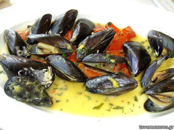 Μύδια αχνιστά (αρκετά καλά, με ζουμί μουστάρδας)