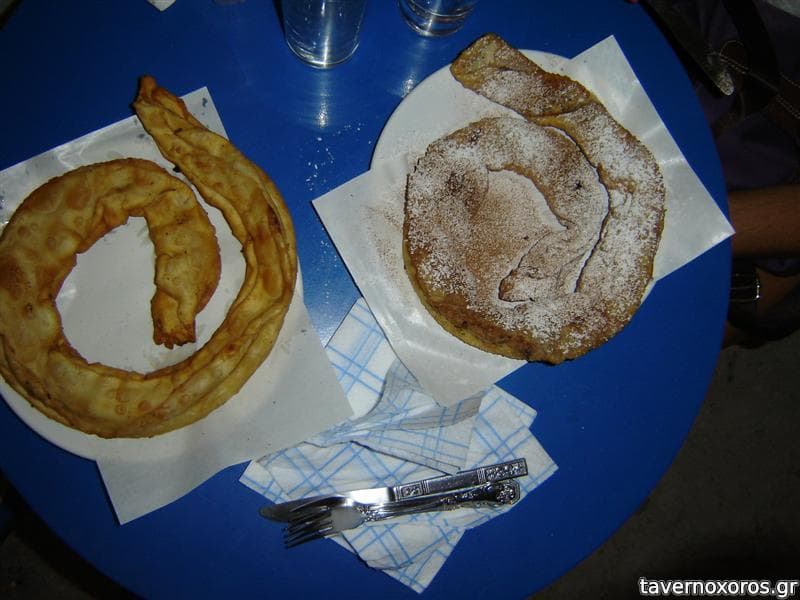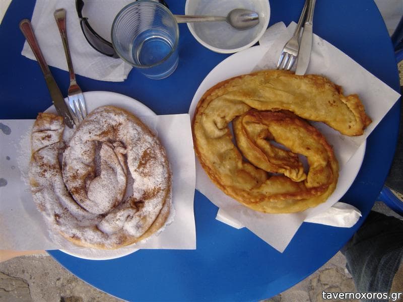 Με σειρά προτεραιότητας προτείνω τυρόπιτα (κλασικό παραδοσιακό έδεσμα του νησιού), γλυκιά/κρέμα (όπως η μπουγάτσα), ζαμπόν-τυρί (μοιάζει με πίτσα καθώς έχει μέσα ντομάτα και πιπεριά) και κοτόπιτα (βαριά). Παλιότερα είχε και ρυζόγαλο που ήταν κι αυτό σπιτικό.