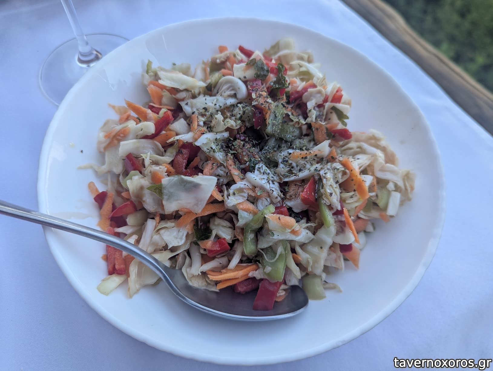 Τα ορεκτικά τα βρήκα πολύ καλά αλλά τα κυρίως ήταν ακόμη καλύτερα: κότσι, μπριζόλα (δική τους συνταγή) και τηγανιά κρασάτη (άπαιχτη). Το κόκκινο κρασί τους ήταν κρασί και όχι νέρωμα. Το γλυκό: χαλβάς, κορμός(!) και γιαούρτι με γλυκό(!!).