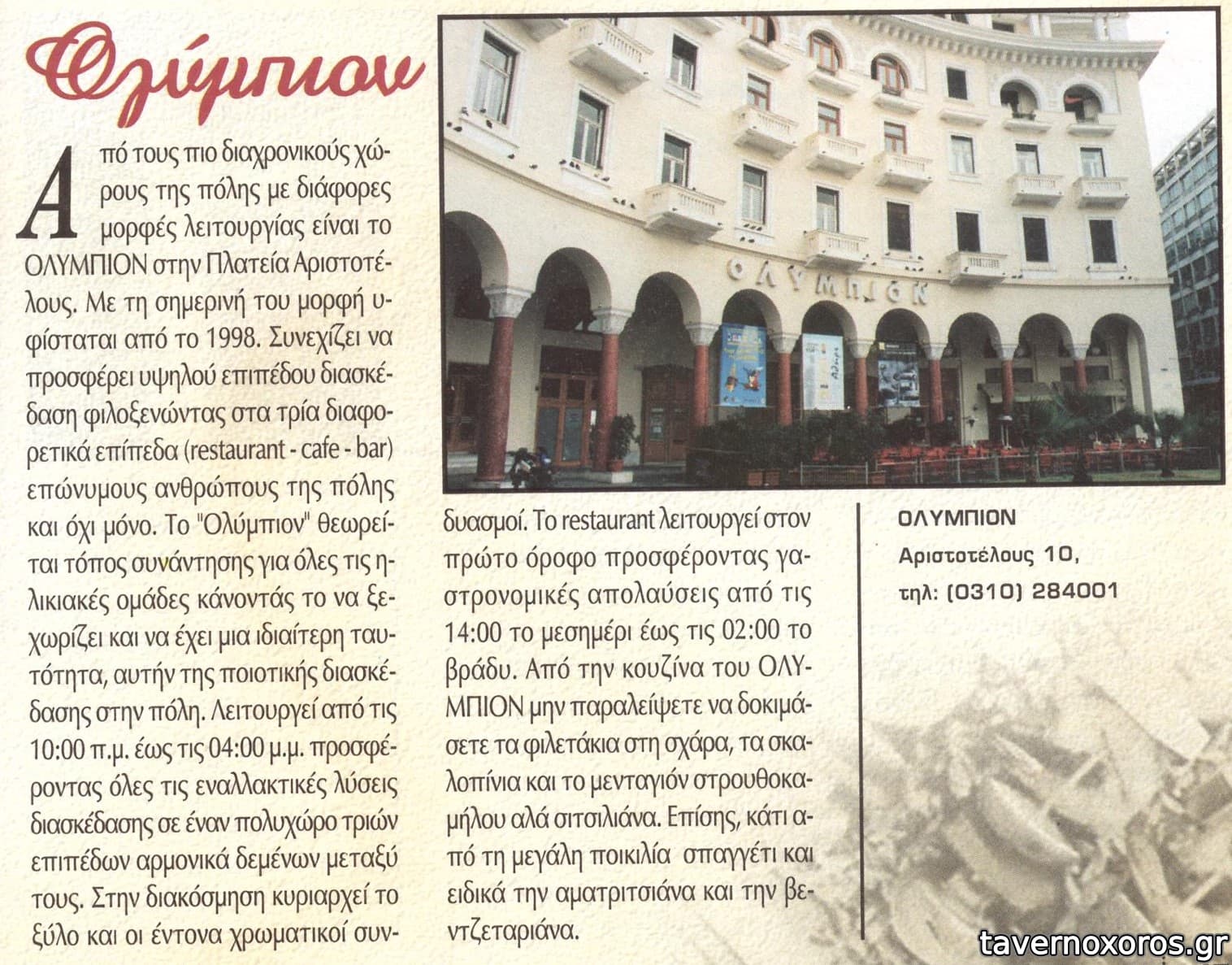 Ολύμπιον" του Θεόδωρου Παπαδόπουλου που είχε ανοίξει στη θέση αυτή το 1951 δίπλα στο γνωστό συνονόματο κινηματογράφο, ο οποίος υπάρχει από τη δεκαετία 40 αρχικά ως "