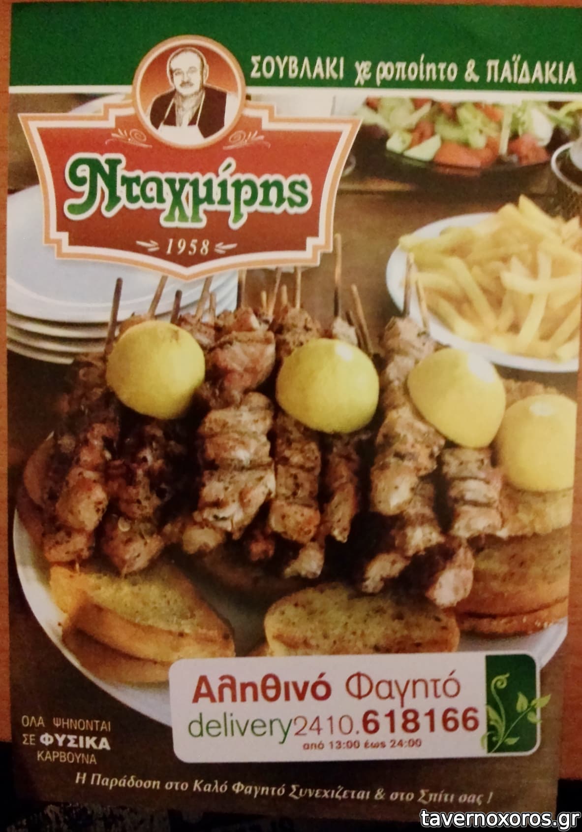 Αναφέρει ότι όλα ψήνονται σε φυσικά κάρβουνα.