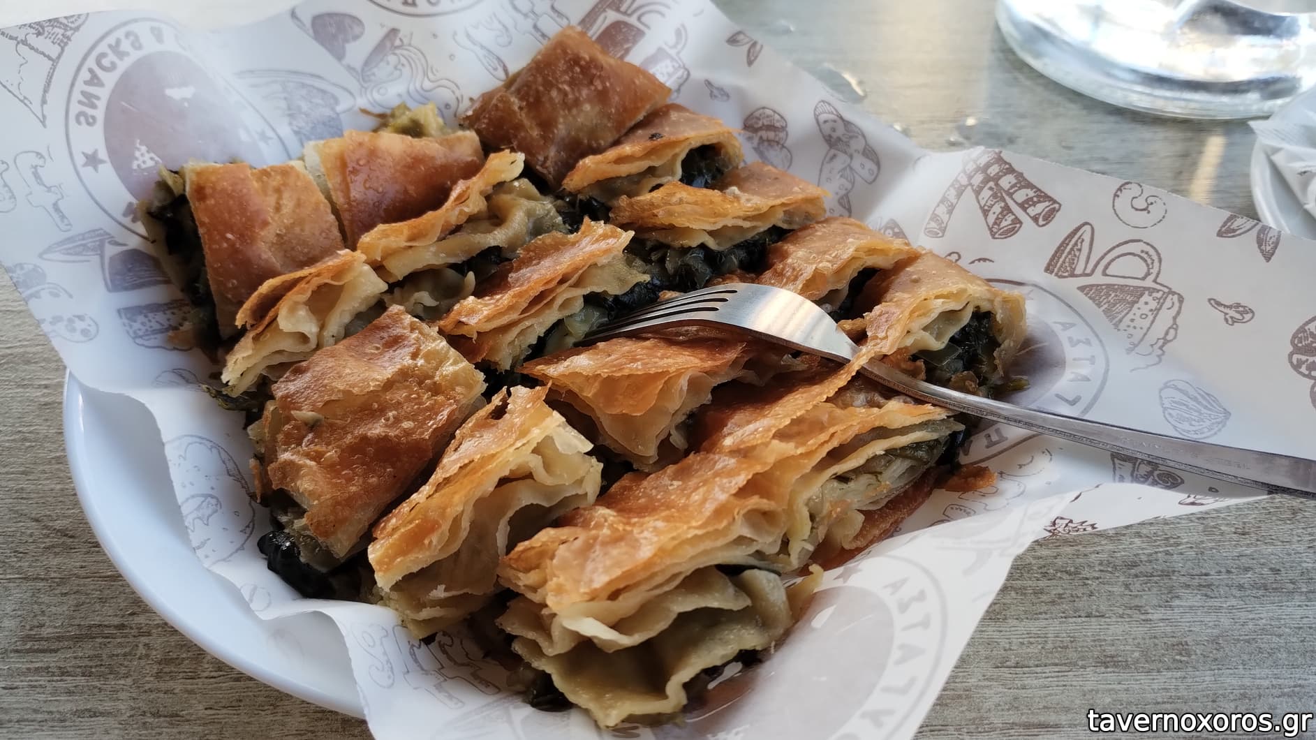 Δοκίμασα μπουγάτσα ανάμικτη κιμά- σπανάκι (ναι, είχε σπανάκι). Ο κιμάς οκ, αλλά το σπανάκι θετική έκπληξη, γιατί έξω από το νωθρό φύλλο είχε πλούσια γέμιση με μπόλικο μαλακωμένο κρεμμυδάκι και αρκετό λάδι, όπως μού αρέσει. Αναγκαστικά παρασύρθηκα γλυκά στα λιβάδια της ακολασίας με ένα ακόμη σπανάκι, με το πρασινισμένο αυτό λαδάκι..