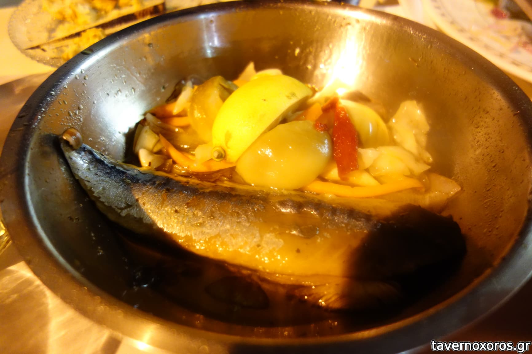 "Σκουμπρί στο τηγάνι σβησμένο με ρακί" (οκ)