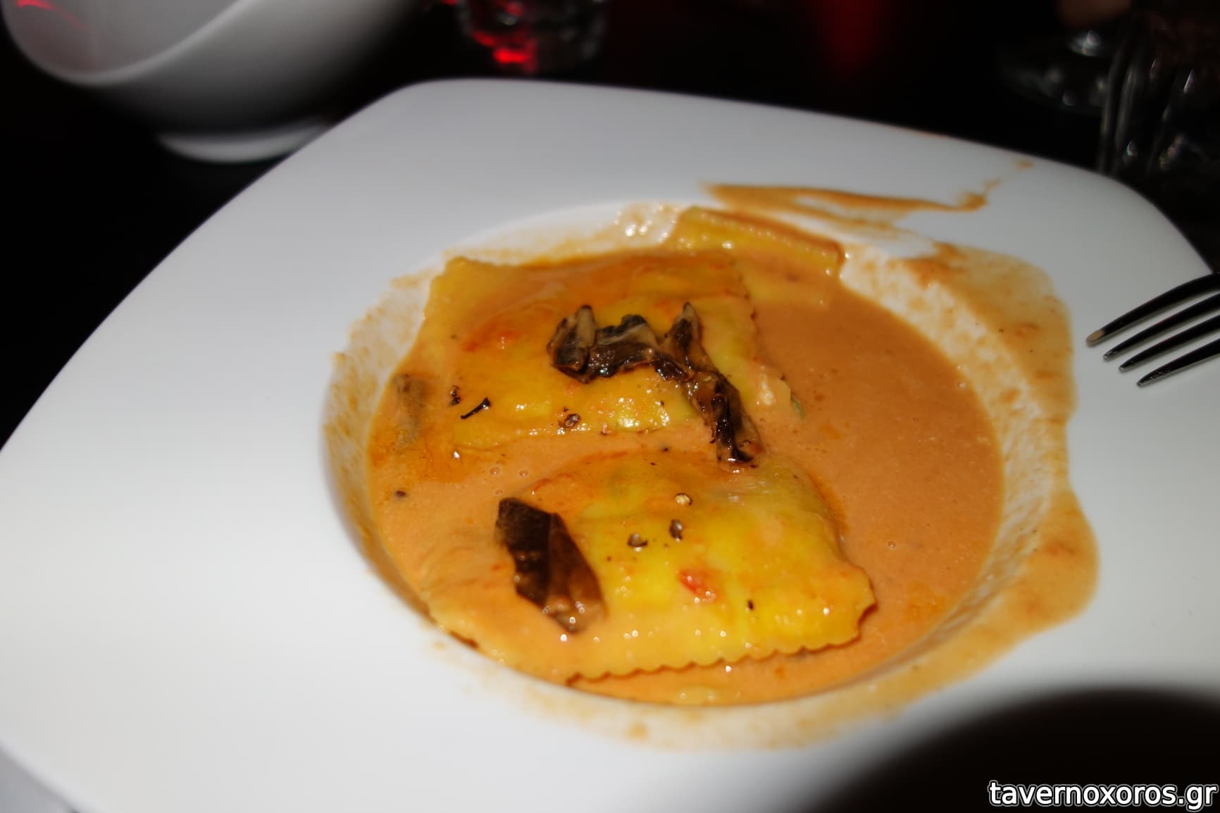 "Raviolli με μανιτάρια Porcinni και Ricotta σε σάλτσα αρωματισμένη με βασιλικό και λάδι λευκής τρούφας" (εξαιρετικό)