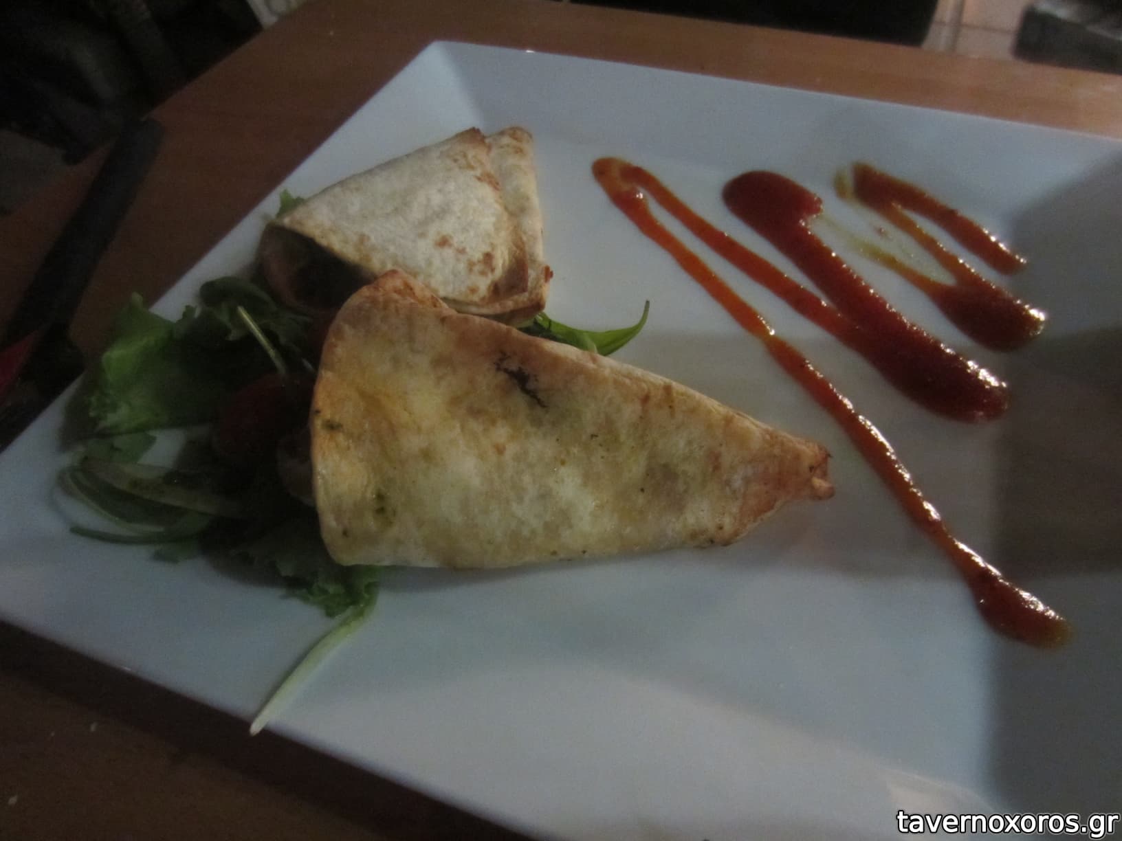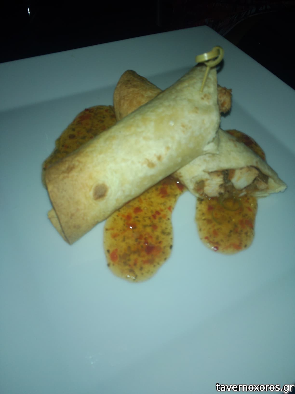 "Τορτίγια με κοτόπουλο και λαχανικά, γλυκόξινη σάλτσα ντομάτας με εσπεριδοειδή" (οκ)