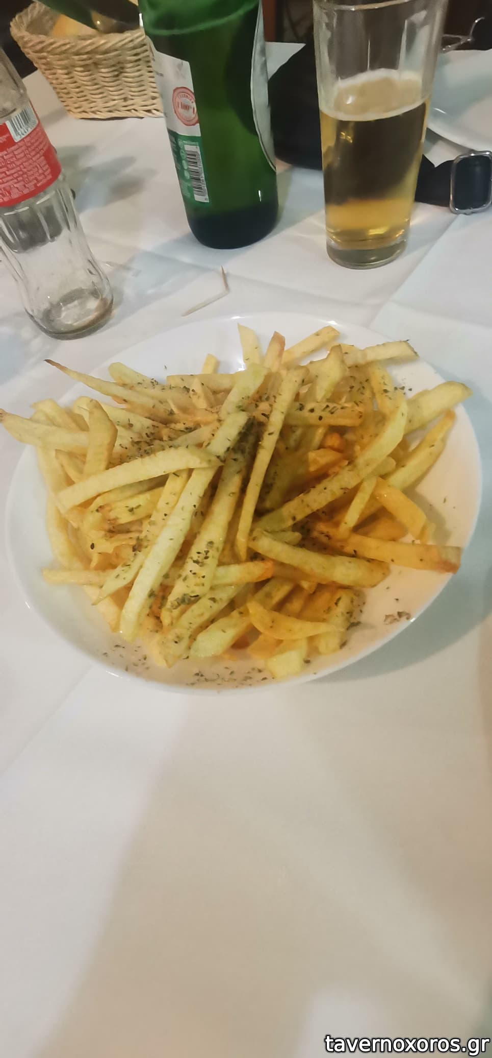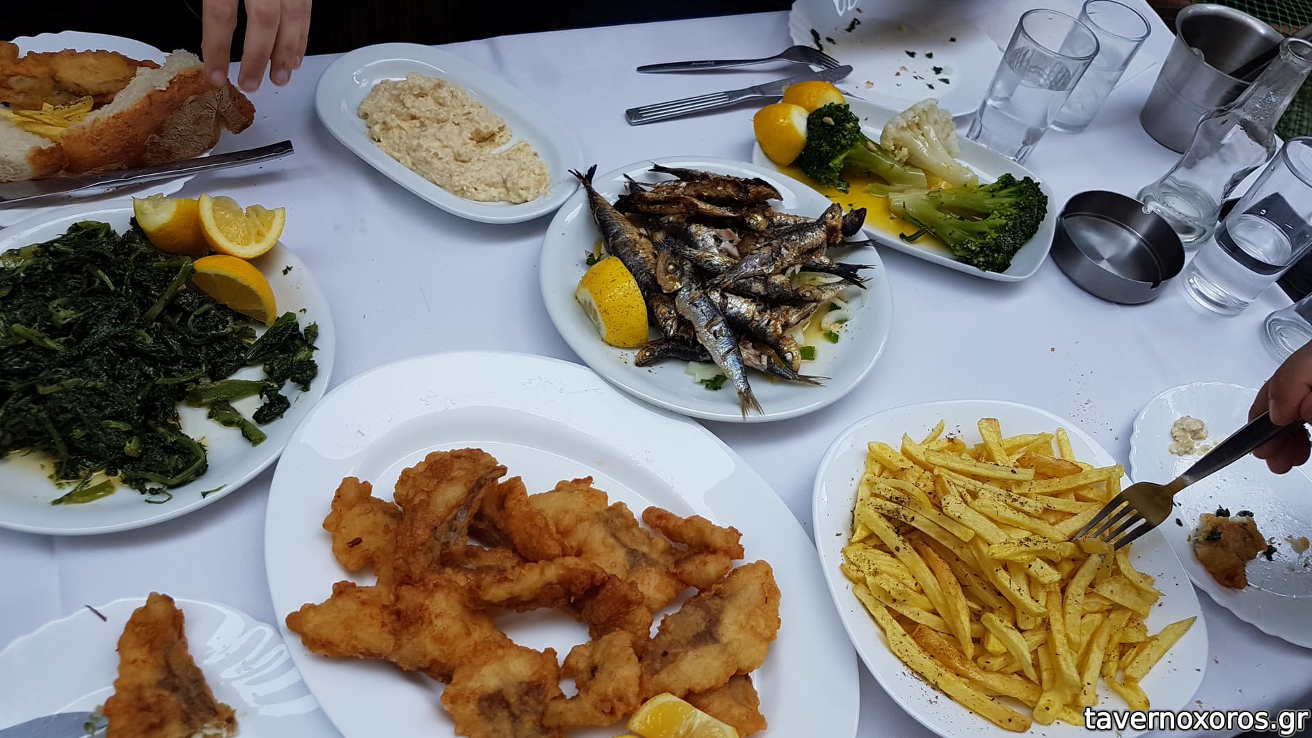 Πατάτες τηγανιτές ωραίες, πατάτες (κάτι δικές τους) δε θυμάμαι πως τις είπε, καλαμάρι γεμιστό (αν και για θραψαλο το έκοψα) , σαρδέλα, μελιτζάνα, χόρτα, μπακαλιάρο λιγότερη από τη μισή μερίδα από τη φωτογραφία από το ταβερνοαλανι , κεμπαπακια. Όλα οκ τα κεμπαπακια δε μ άρεσαν καθόλου σίγουρα κατεψυγμένα, ο μπακαλιάρος μέτριος, το καλαμάρι με ενθουσίασε. Κοντά στα 50 ευρώ μαζί με μια ρετσίνα. Νταξει όχι κάτι τρομερό περίμενα πολύ καλύτερες τιμές και πράγματα. Αυτό που ξεχώρισα σε μερίδα ήταν το γεμιστό. Με ενθουσίασε είχα και καιρό να φάω είχε και δύο κομμάτια μεγάλα και ήταν λουκούμι. Όπως είπα ξανά μέτρια εμπειρία, σκάσαμε, τα λεφτά δεν τα λες με την καμία λίγα, απόδειξη κανονικά. Γενικά ήρθαν πάντως οι μισές μερίδες από ότι στις φωτογραφίες στα κυρίως εκτός φυσικά από το καλαμάρι. Για καλαμάρι, χόρτα και πατάτες ξαναπήγαινα για κάτι άλλο όχι