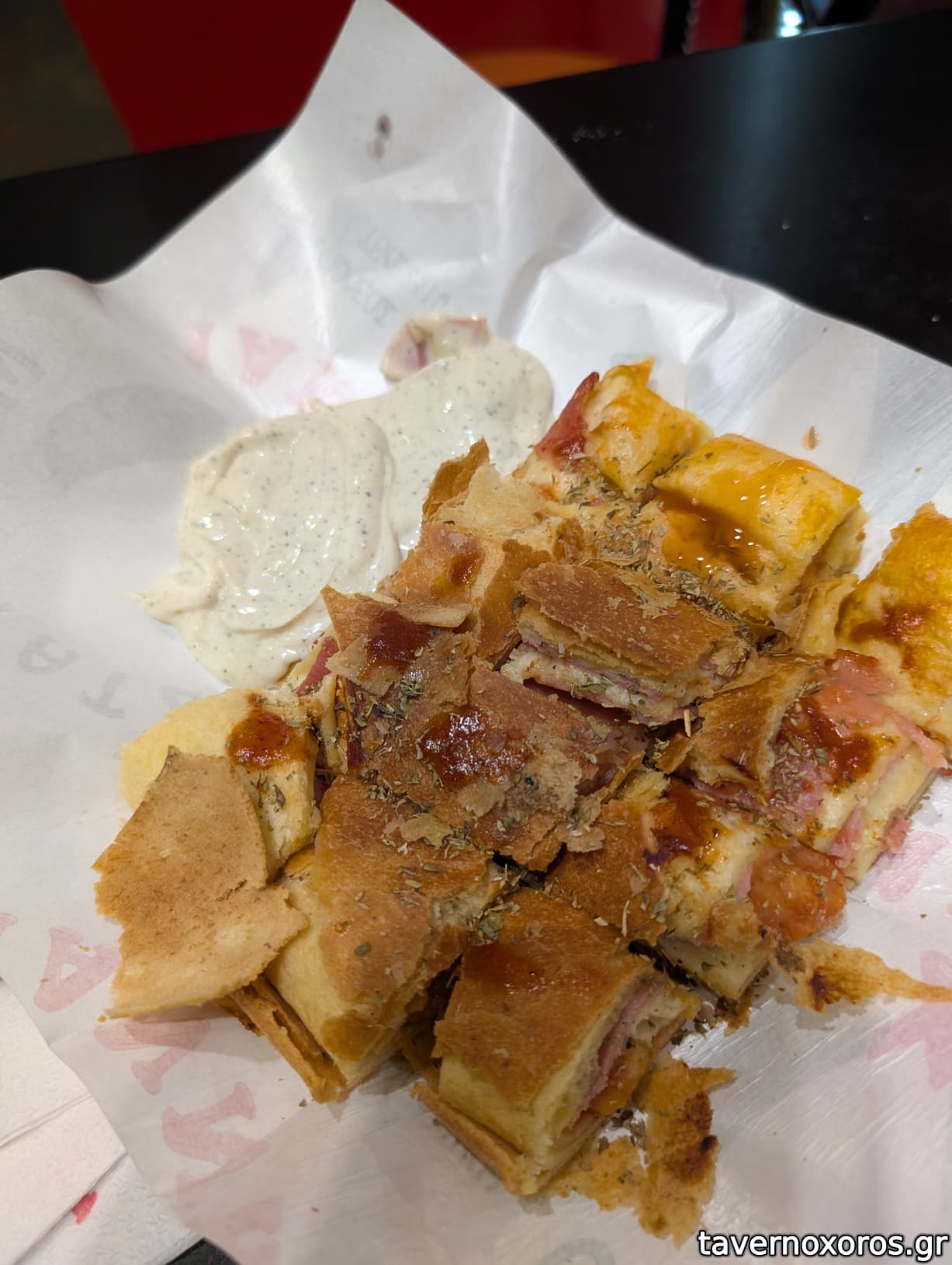 μετρια τραγανο φυλλο, γεμιση ικανοποιητικη ποσοτητα και γευστικη, αξιολογο συνολο, 1.