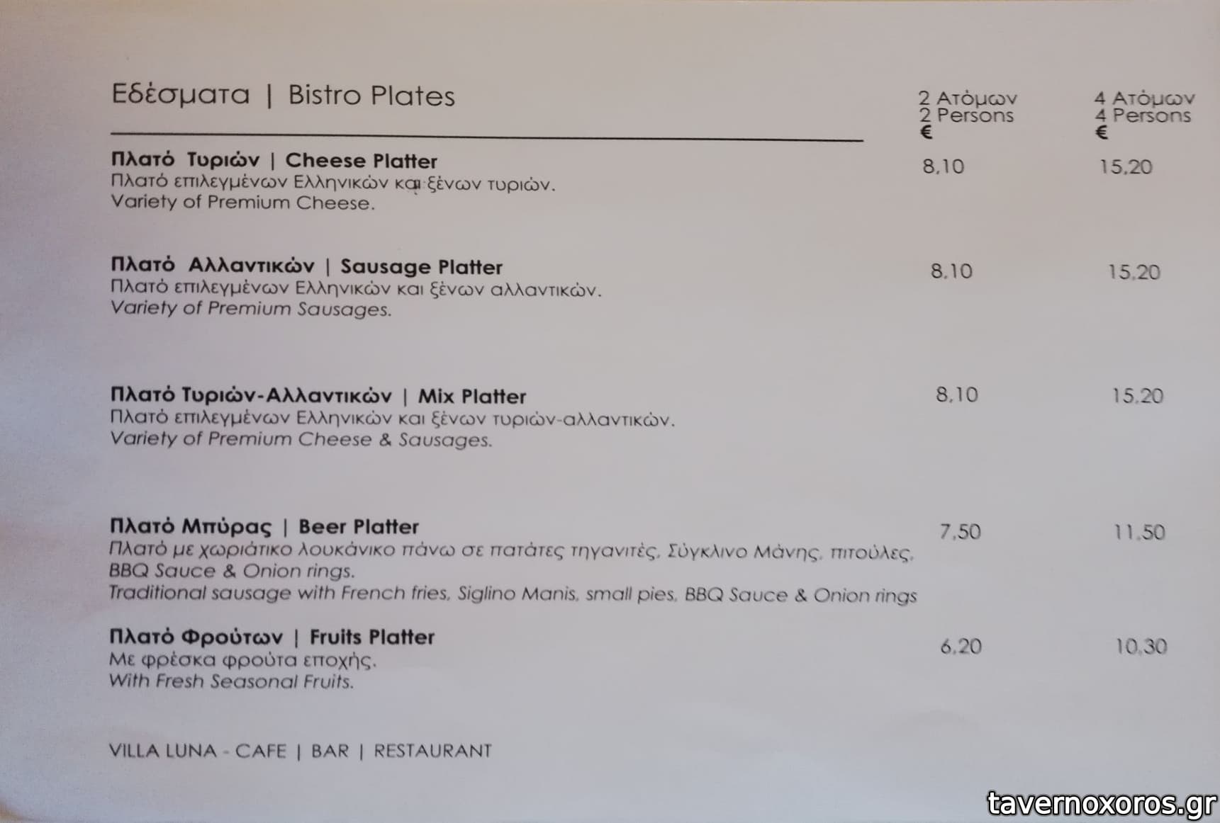 | Λέξεις κλειδιά | Βίλα Λούνα, #cafe-bar, #θέα, #πρωινό, #cocktails, #πεϊνιρλί, #πίτσα, #ομελέτα, #τοστ, #club sandwich, #πλατώ τυριών, #κρουασάν |