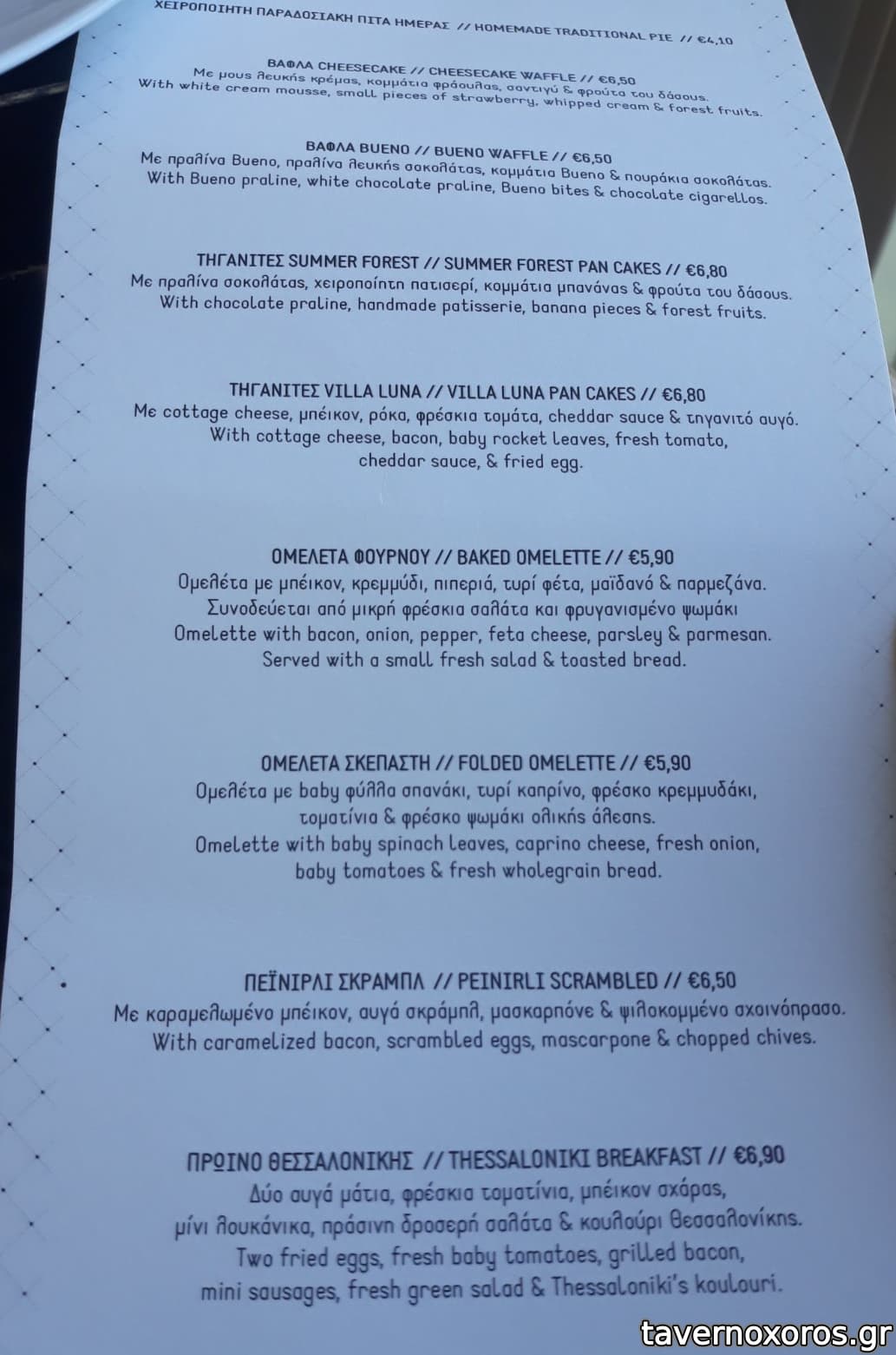 Επίσης ειδικό τιμοκατάλογο που διαφημίζει Πρωινό (Ομελέτες, Καγιανάς κτλ κτλ)