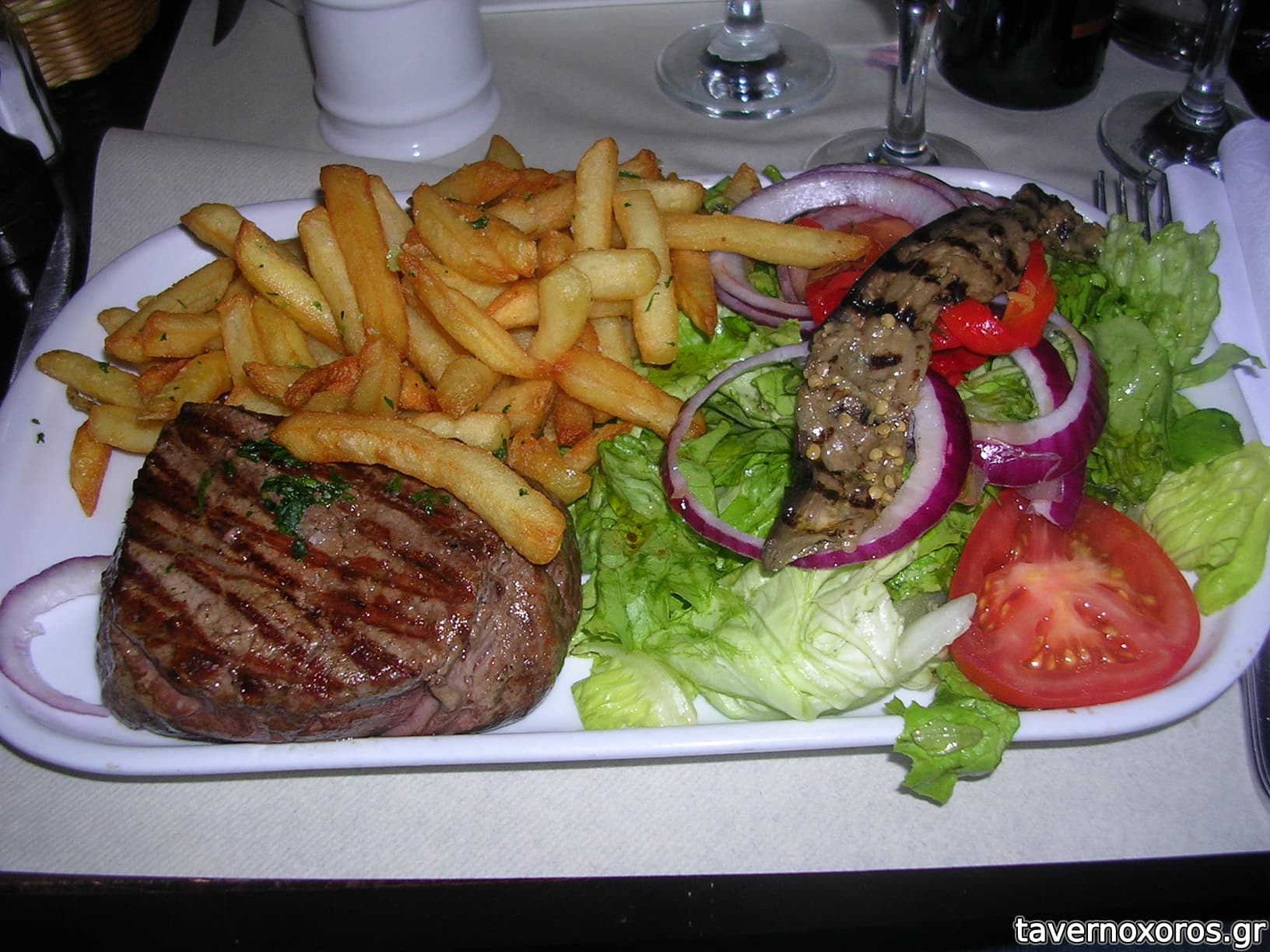 Steak (καλό το κρέας, όλα τα υπόλοιπα, ποιότητας φτηνού ψητοπωλείου, σίγουρα δεν άξιζε την υψηλή τιμή του)