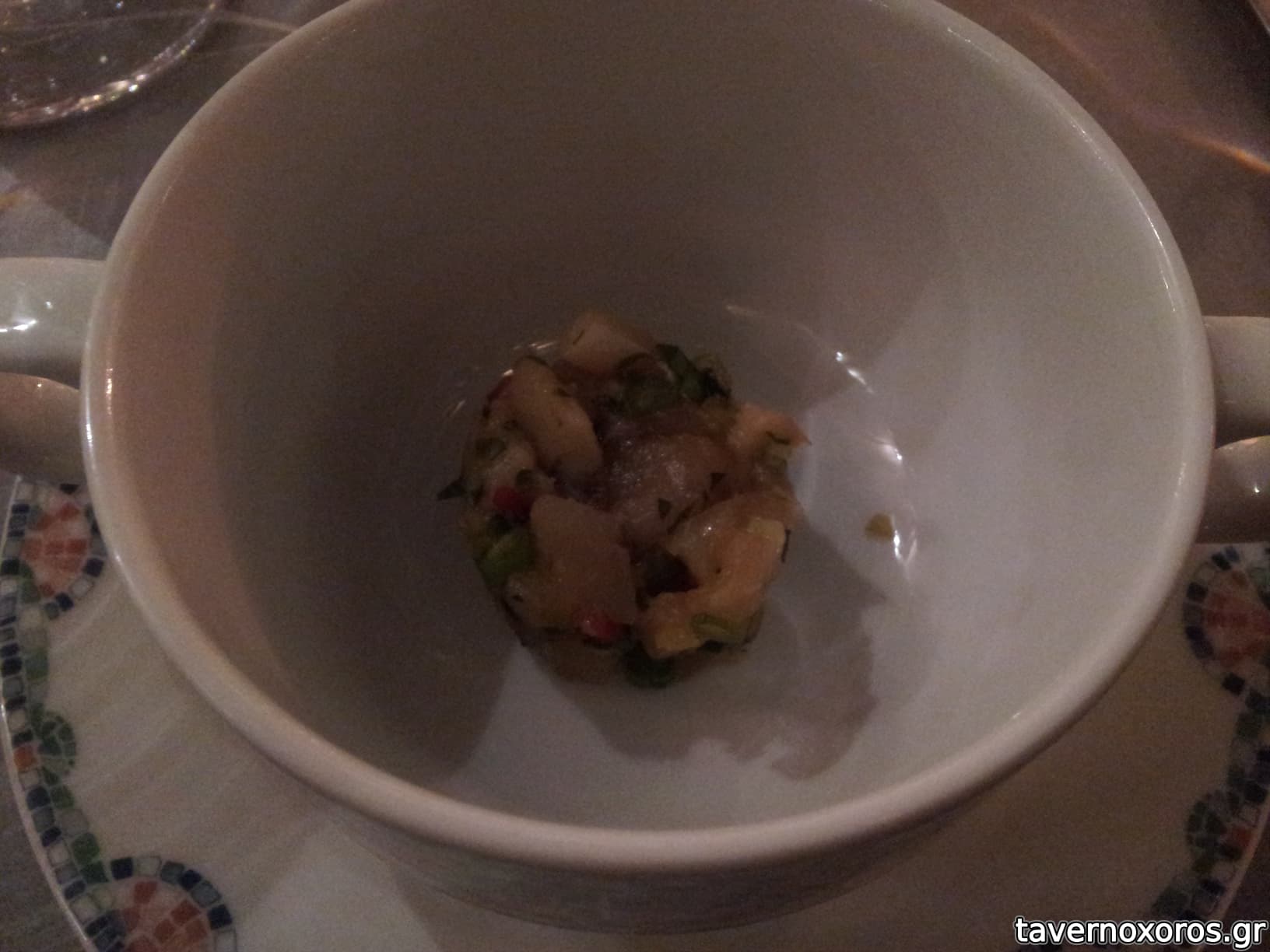 Amuse bouche σούπα gaspacho καπνιστής πέστροφας (μετά)