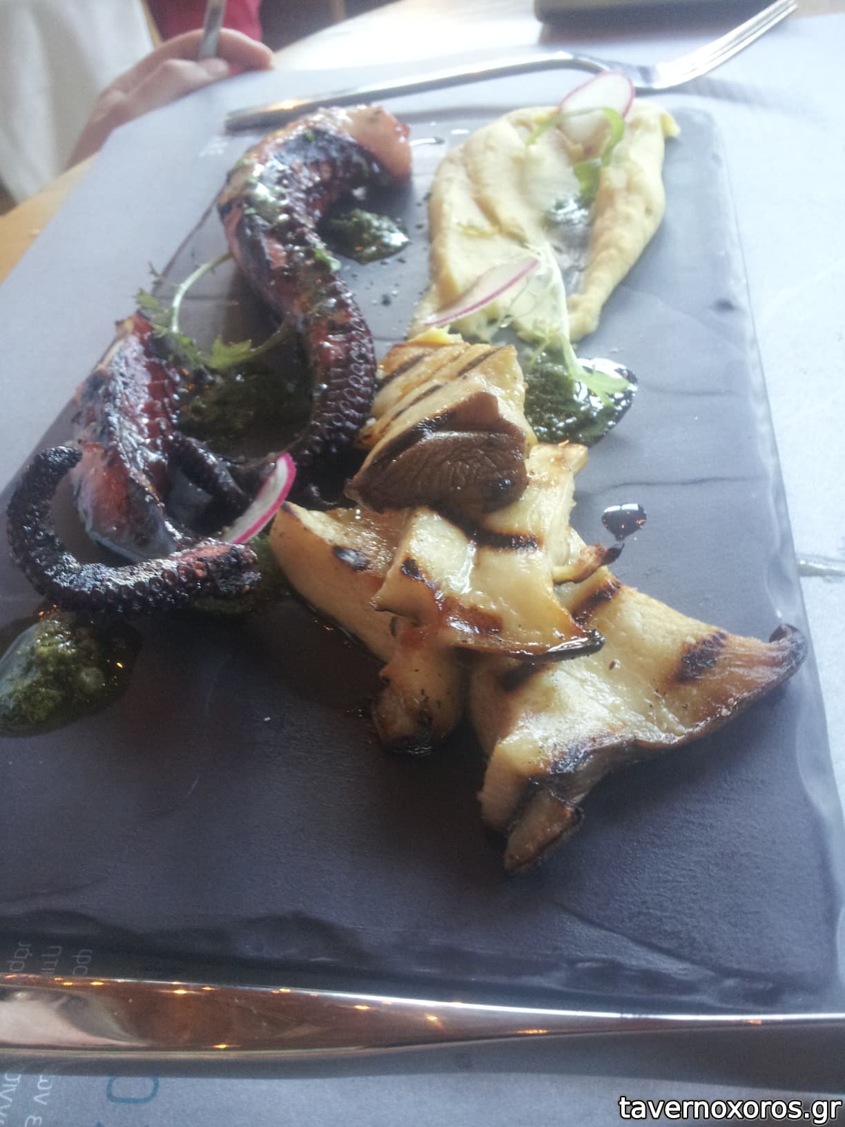 Χταπόδι με μανιτάρια, φάβα και αρωματικό λαδολέμονο
