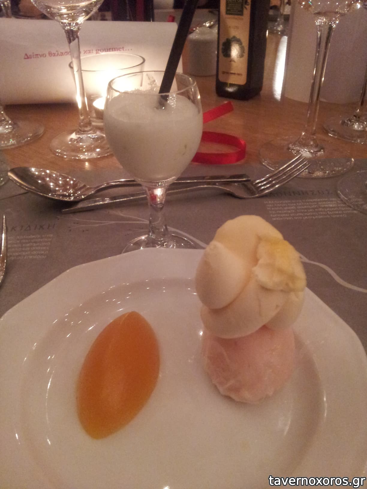 Σορμπέ και ποπ κορν από λίτσι, ζελέ από φρούτα του πάθους και φραπέ από καρύδα