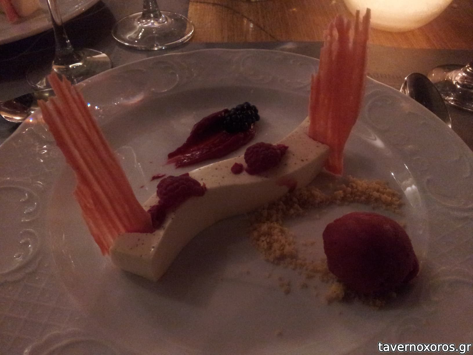 Πανακότα με φρέσκια βανίλια βατόμουρα και σάλτσα από φρούτα του δάσους