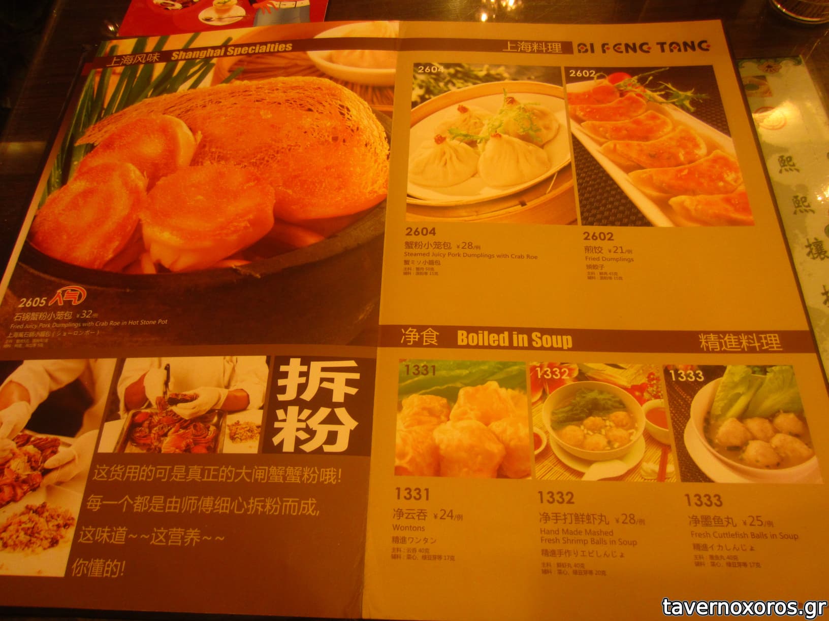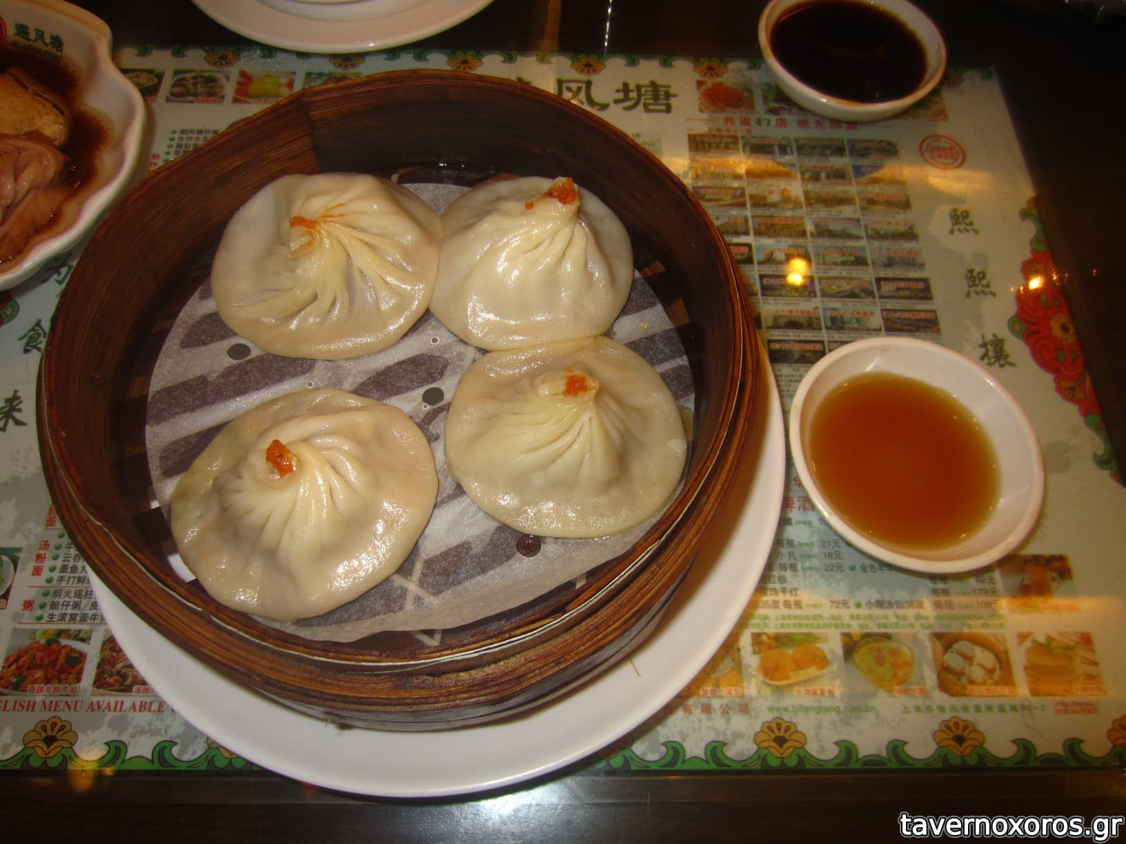 "Steamed juicy pork dumplings with crab roe" (οκ)