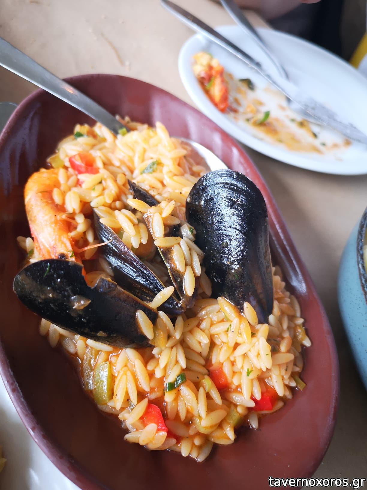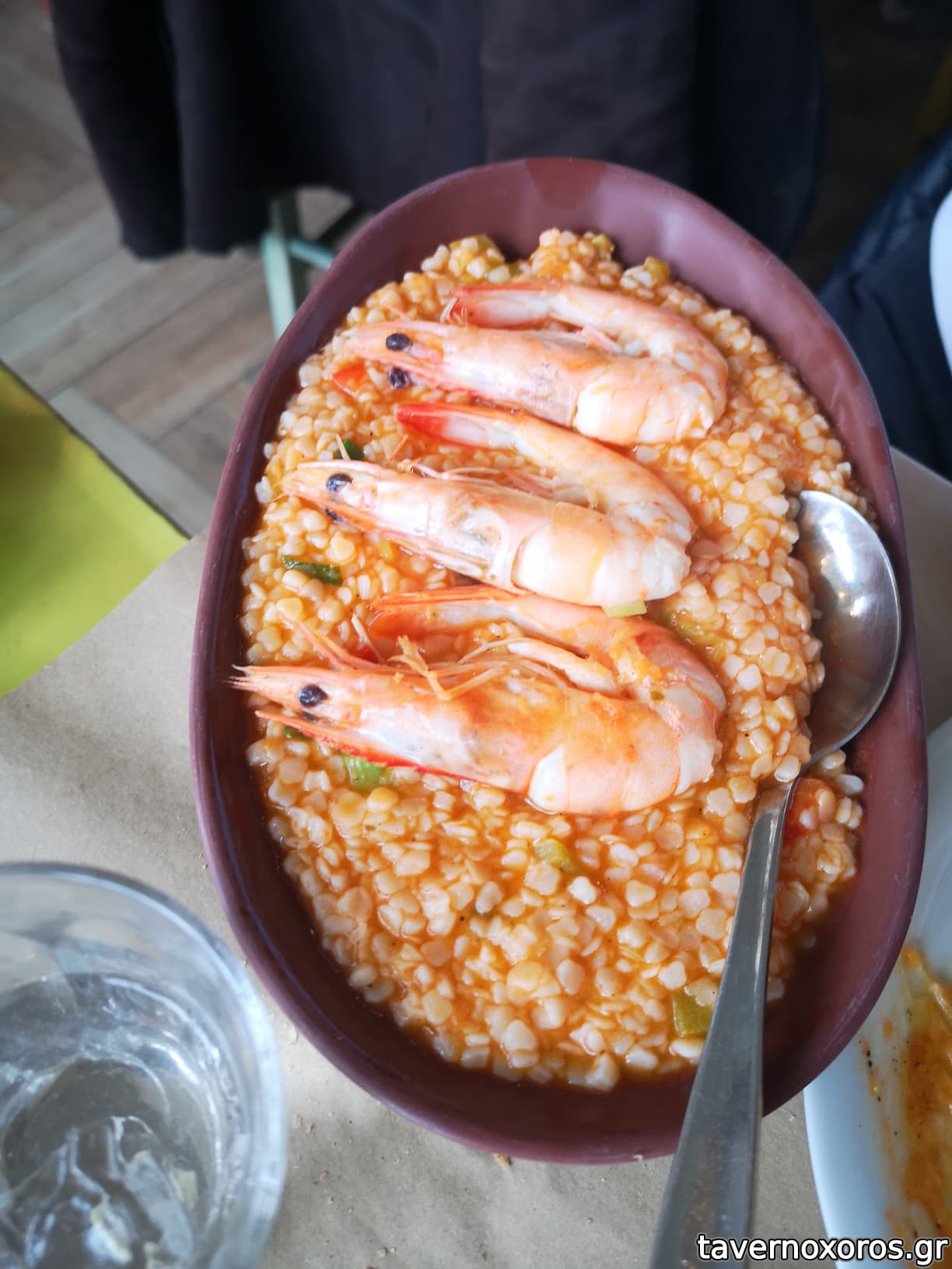"Κριθαρότο θαλασσινών με γαρίδες και μύδια" (μέτριο)