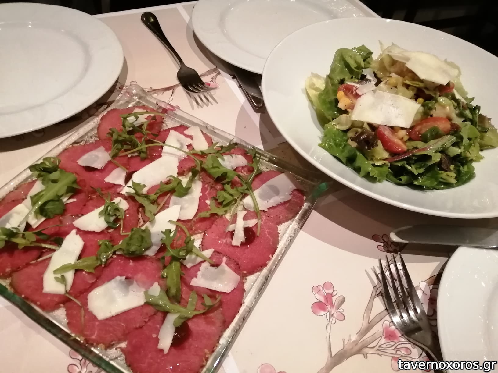 Καρπάτσιο μόσχου και πράσινη σαλάτα