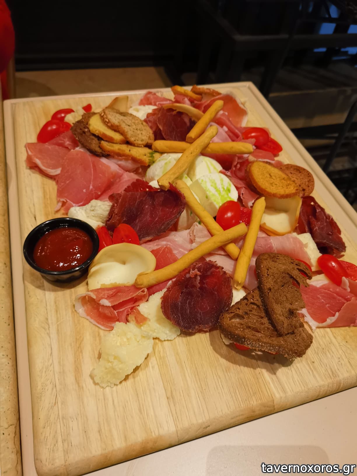 Πλατώ τυριών/αλλαντικών γευστικά και εμφανισιακά κάτω του μετρίου, μπρουσκέτες με σολομό και χταπόδι προς το μέτριες ενώ η σαλάτα τους ήταν σχετικά καλή.