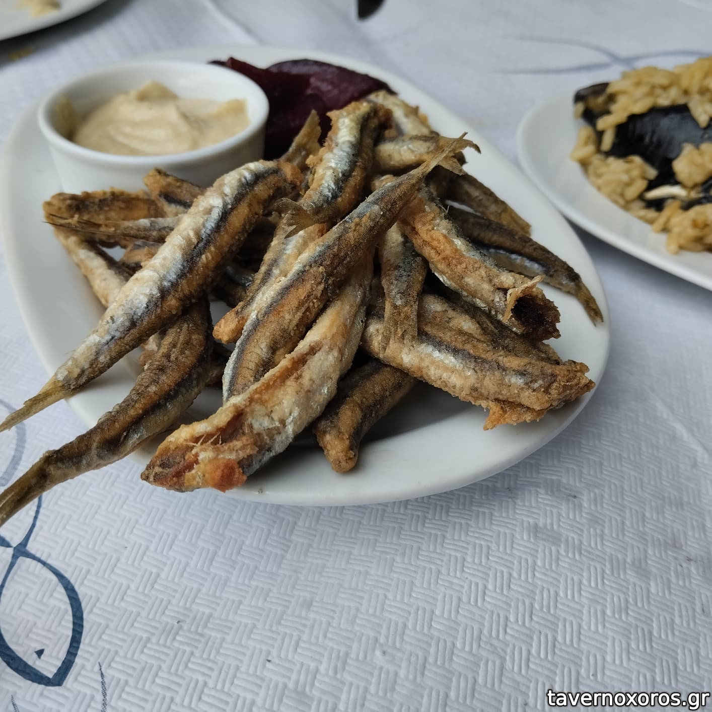 Γαύρος τηγανητός και μυδοπίλαφο για τα επόμενα δύο.