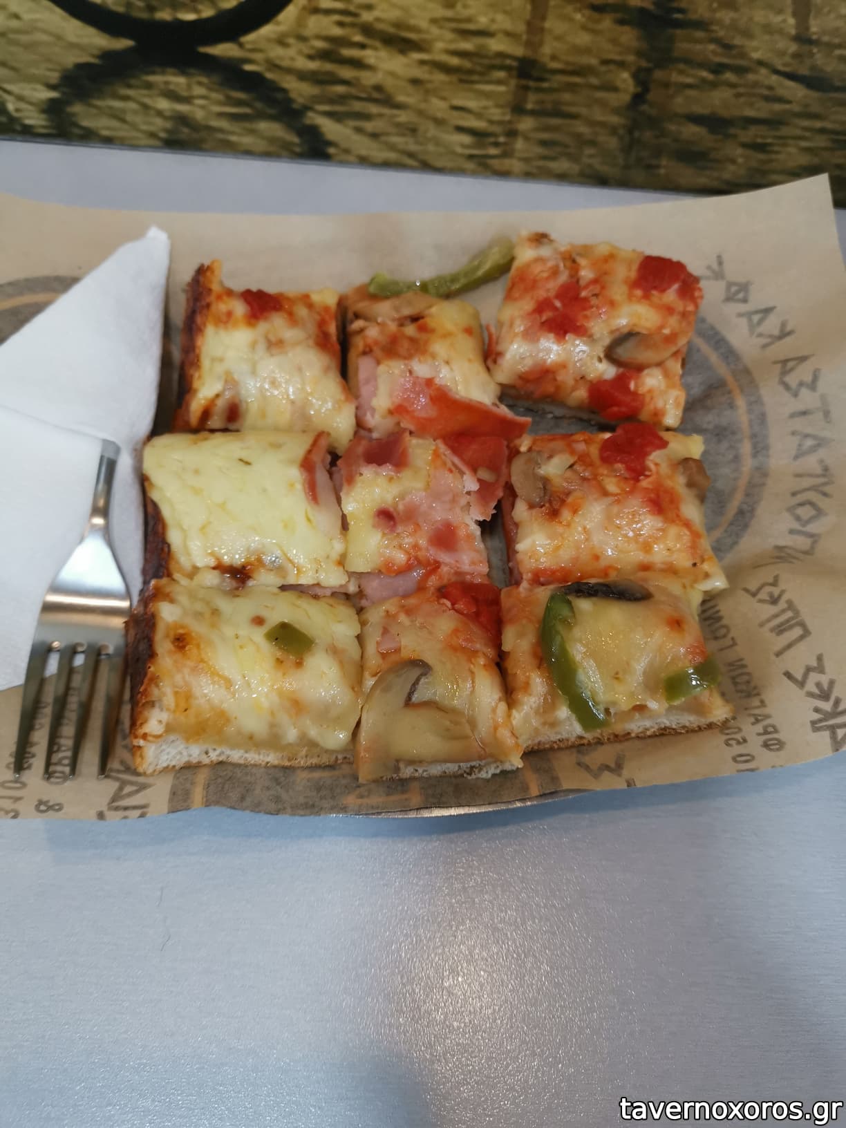 Τυρόπιτα τρίγωνη που δοκίμασα ήταν καλή και χωρίς καθόλου λάδια, ομοίως και τα μικρά πιτάκια με κιμά (μου άρεσε περισσότερο), τυρί και κασέρι.Ατομική πίτσα συμπαθητική