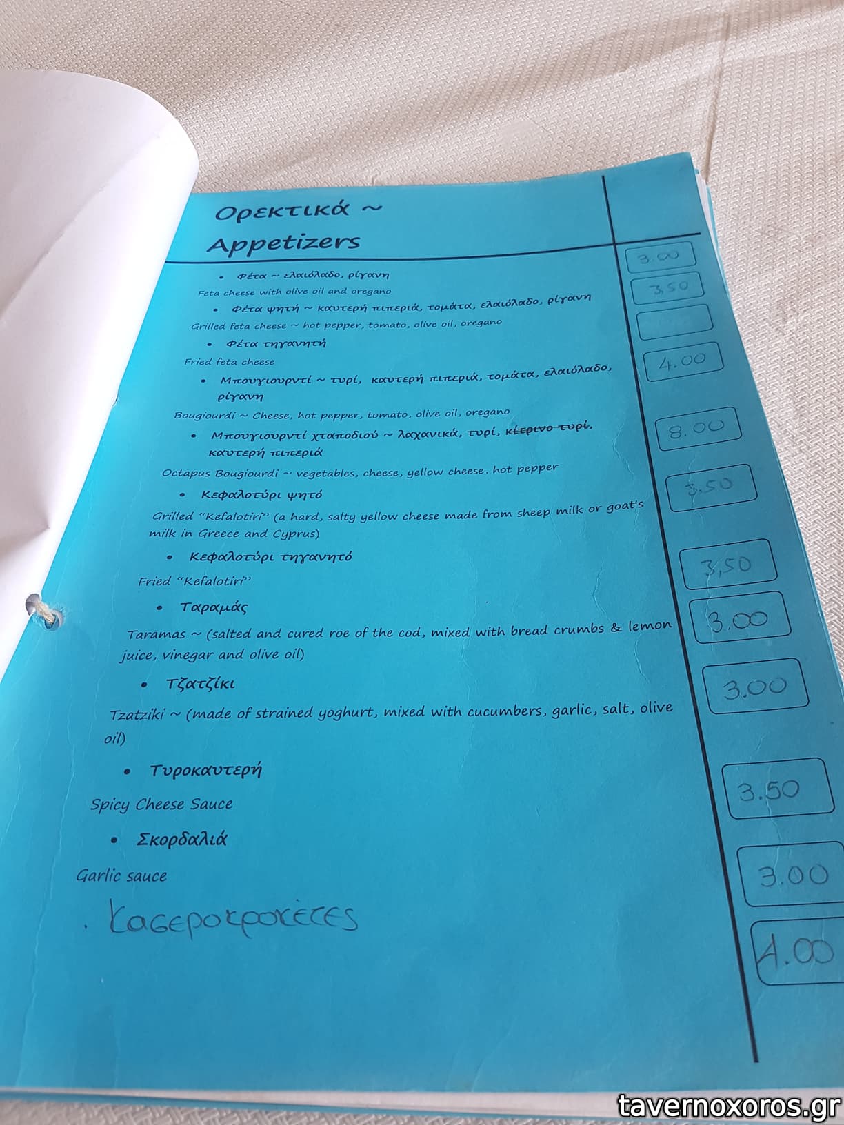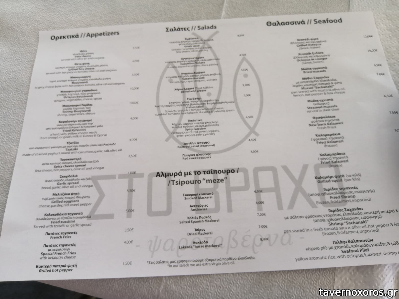 | Λέξεις κλειδιά | #θέα, #χωματόδρομος, #παστά, #γαύρος μαρινάτος, #πέρκα, #ρέγγα, #κοπανιστή, #μελιτζάνα τηγανητή, #κολοκυθάκια, #πιπεριές, #τονοκεφτέδες, #γαυροκεφτέδες, #χταποδοκεφτέδες, #μυδοπίλαφο, #γαρίδες, #θράψαλα, #γαύρος, #σαφρίδια, #μπακαλιάρος σκορδαλιά, #μαρίδα, #γαλέος, #αθερίνα, #πεσκανδρίτσες, #μπακαλιαράκια, #κουτσομούρες, #μπαρμπούνια, #μαριδάκι, #σαρδέλα, #μύδια, #σουπιά κρασάτη, #σουβλάκια, #μπιφτέκι, #πανσέτα, #σνίτσελ, #κοτόπουλο, #χοιρινή, #παγωτό μηχανής |